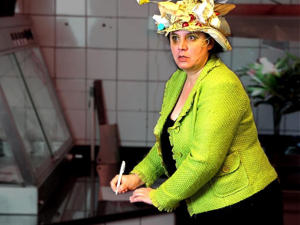Der fiese Schlachter Schlabbeck führt Experimente in seiner Küche durch und Headhunterin Susi ist