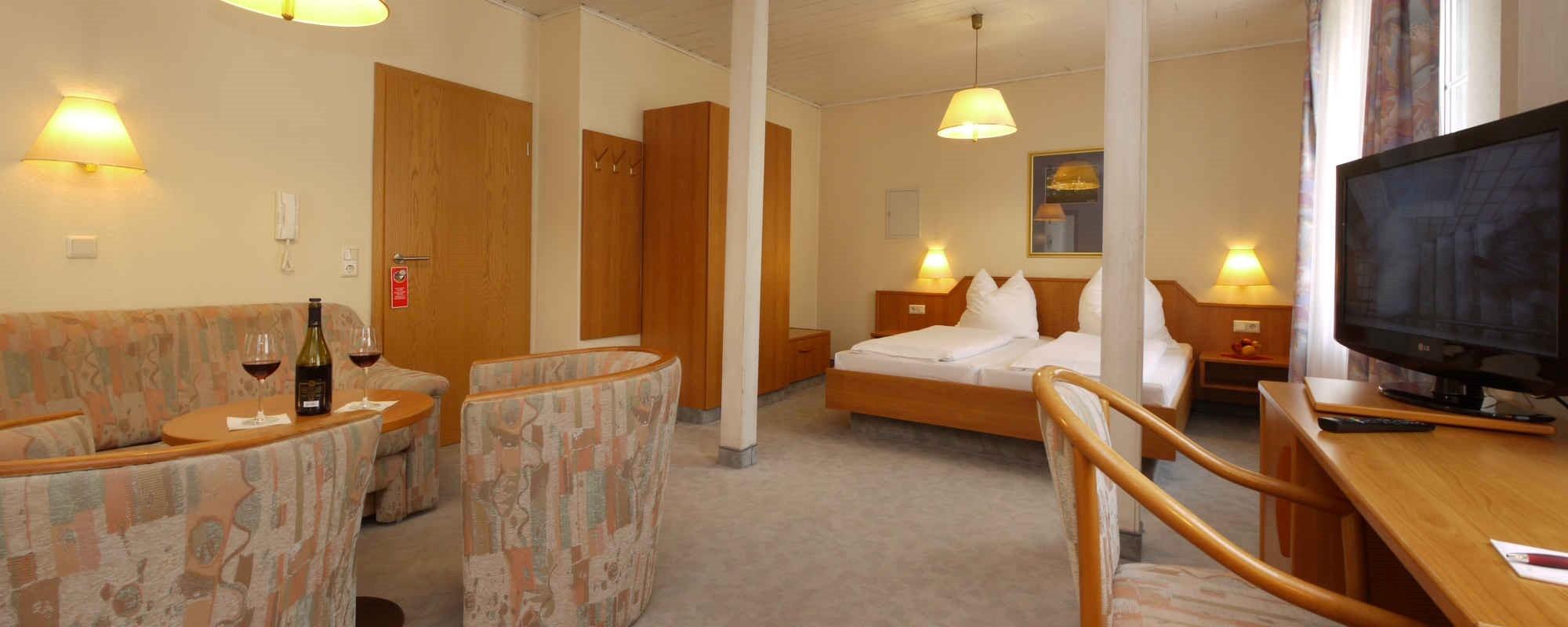 Das ehemals als Gaststätte "Am Bahnhof" geführte Haus wurde in 1938 von unseren Großeltern Otto und Theresia Pinger für 28.000,-- Reichsmark erworben. Nach der Übernahme der Pinger Hotels durch unseren Vater Heinz-Otto Pinger wurde die Gaststätte zu einem kleinen Hotel-Restaurant umgebaut und im Laufe der Zeit den jeweiligen Gästebedürfnissen angepasst. Nun hat die dritte Generation - Leonard und Michael Pinger - das traditionsreiche Haus im Rahmen eines umfassenden neuen Konzeptes in 1994 zu gemütlichen Ferienwohnungen umgebaut. Wir haben für Sie je 2 Apartments der drei Typen "Ahr", "Mosel" und "Rhein" für zwei, vier und sechs Personen komfortabel eingerichtet. Die Apartments befinden sich mitten im Stadtzentrum von Remagen, nur unweit der Rheinpromenade, dem Geschäftszentrum mit Fußgängerzone und Banken sowie dem Interregio-Bahnhof und den Bushaltestellen. Das Aparthotel wurde vom DTV mit drei Sternen klassifiziert.