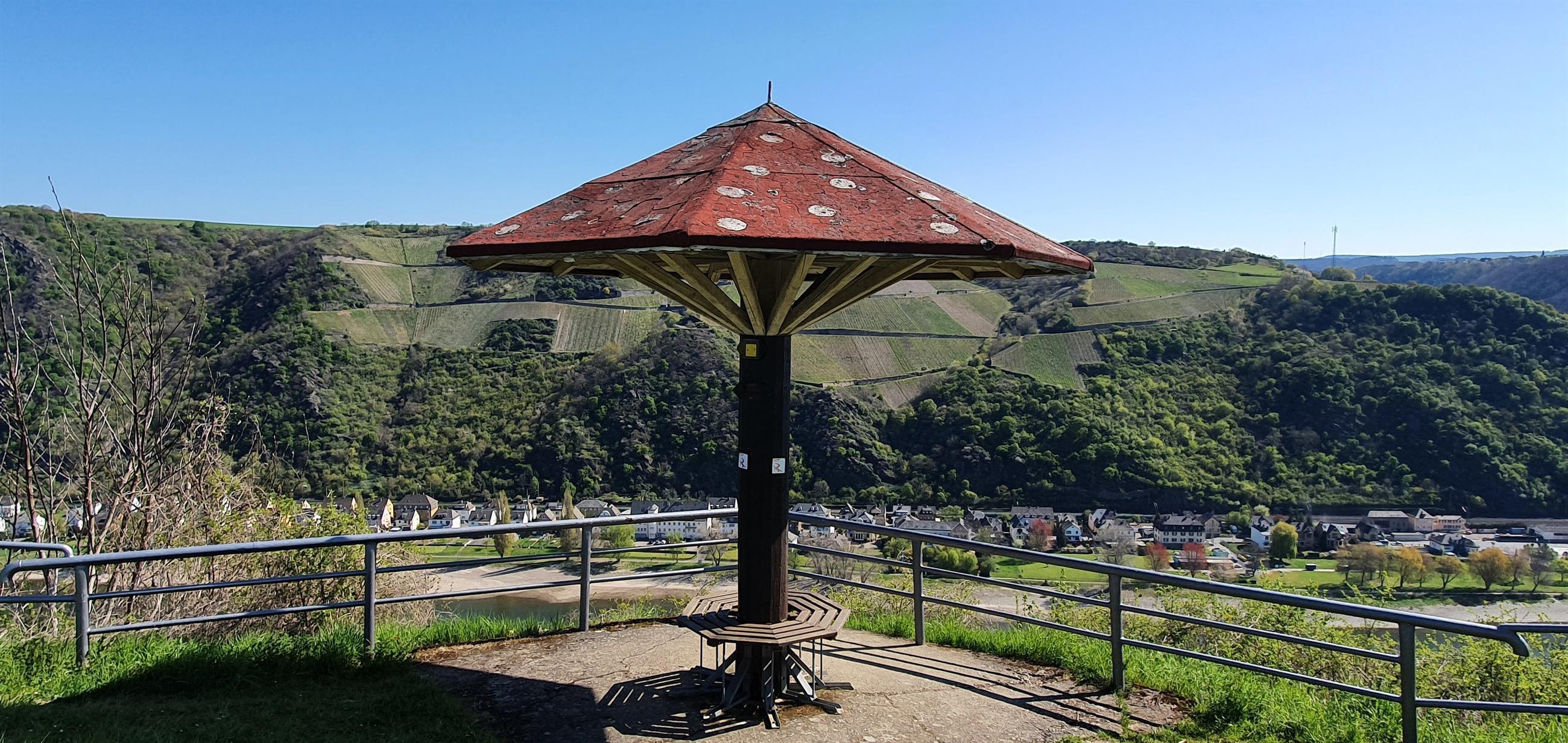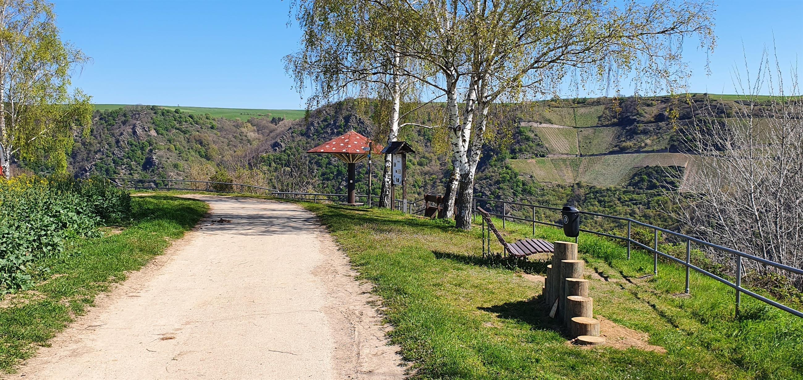 Aussichtspunkt "Werlauer Pilz" mit Ruhebank und traumhaftem Blick ins Mittelrheintal und in den Taunus.