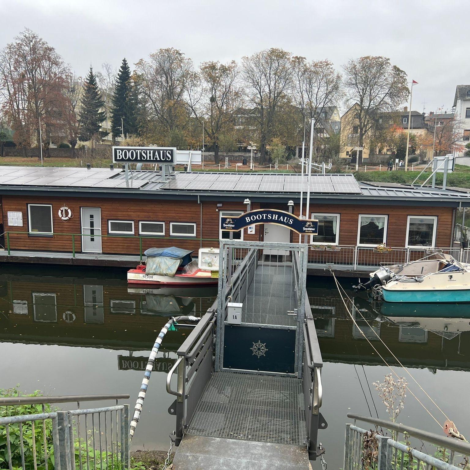 Das Bootshaus auf der Lahn befindet sich ca. 400 Meter von der Lahnmündung am linken Ufer zwischen Ober- und Niederlahnstein.