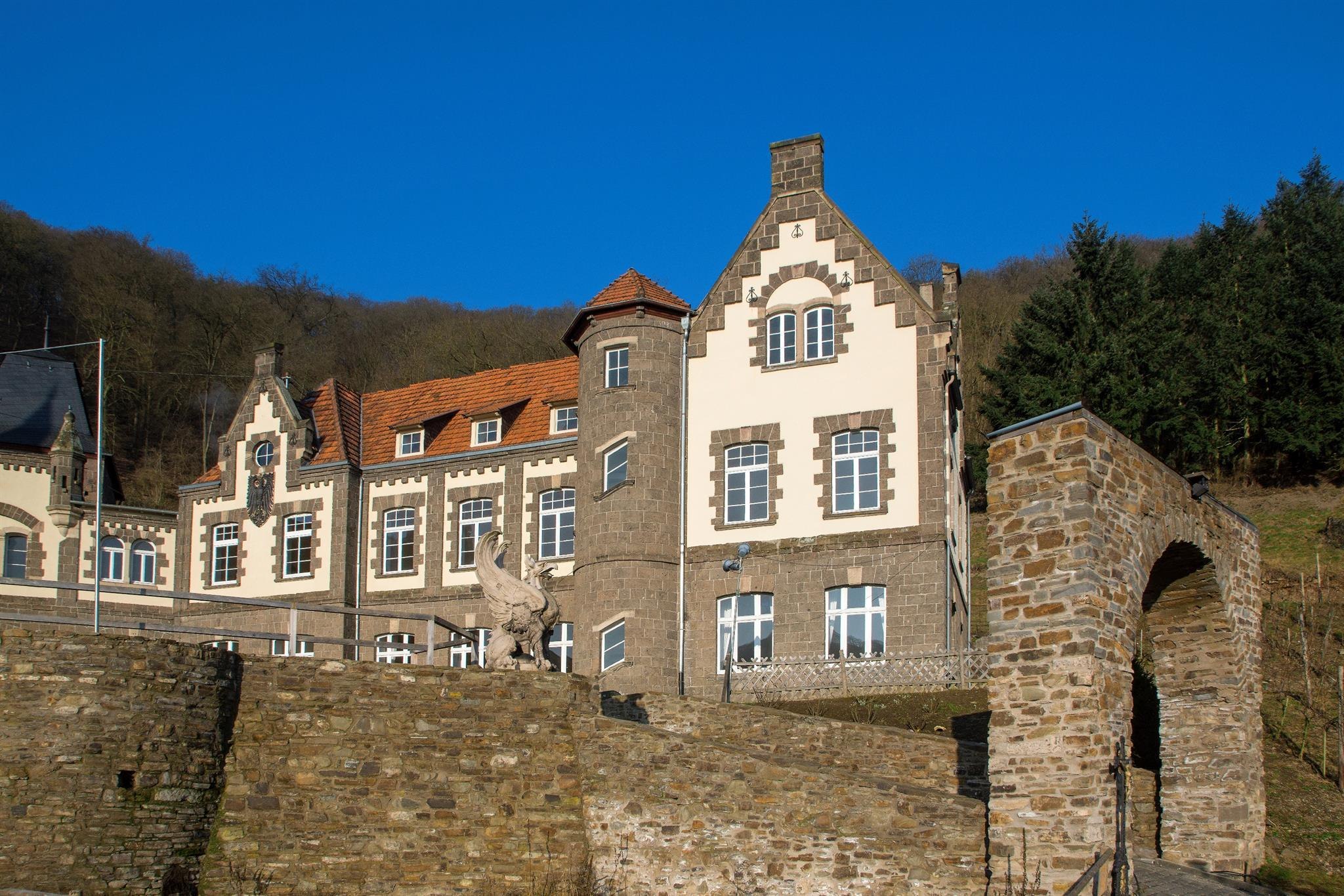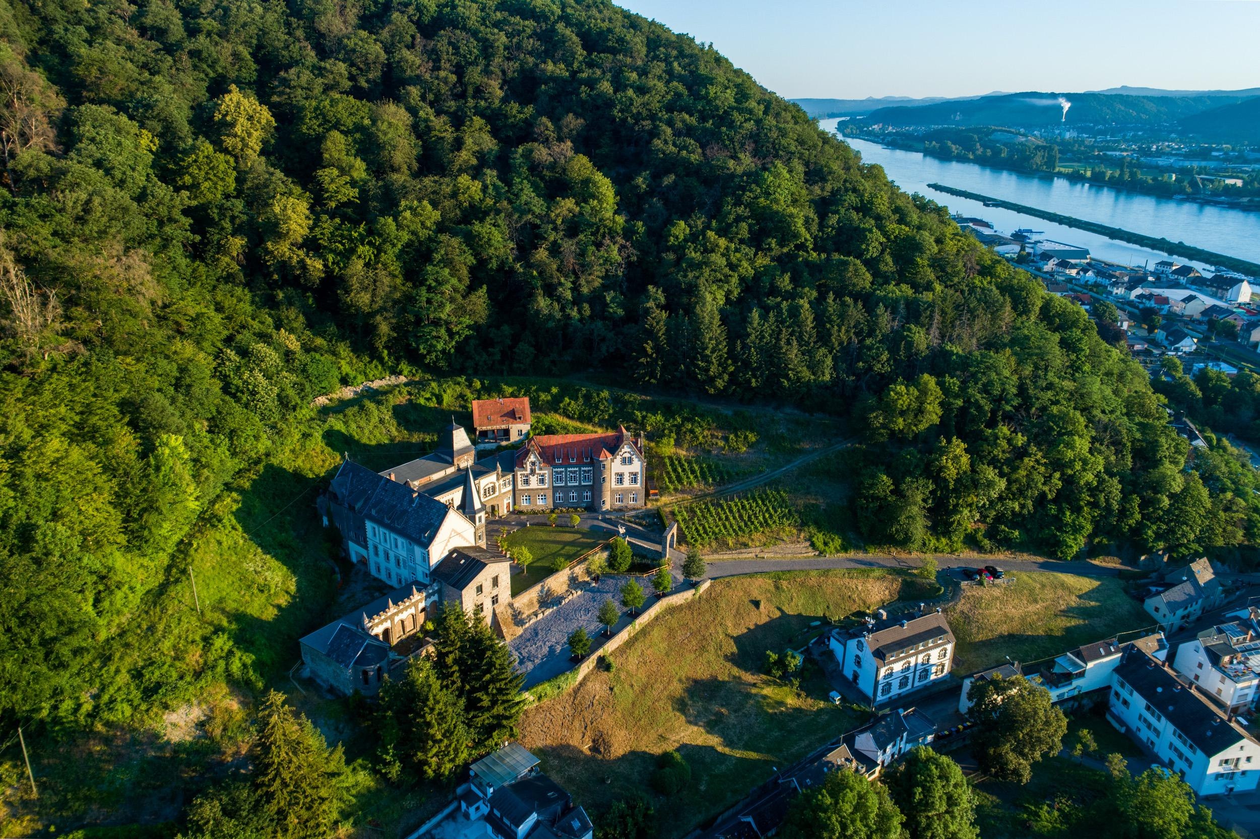 Der villenartige Schlossbau am Rhein oberhalb von Brohl-Lützing datiert aus dem Jahr 1888.