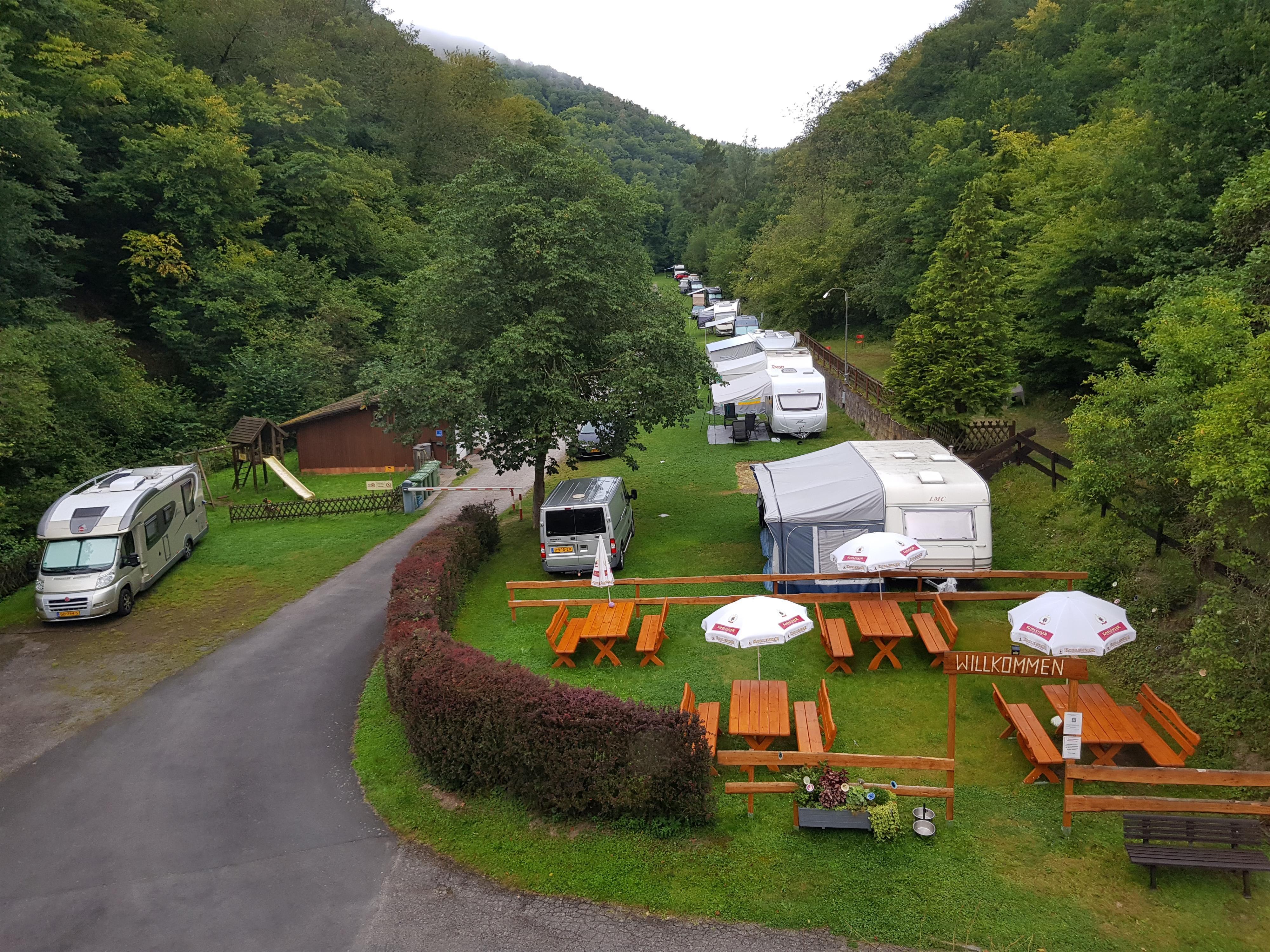 Der Platz befindet sich auf dem Gelände der 5. Mühle im romantischen Tal der Loreley und liegt ca. 30 km südlich von Koblenz, am Fuße der Burgruine „Rheinfels".