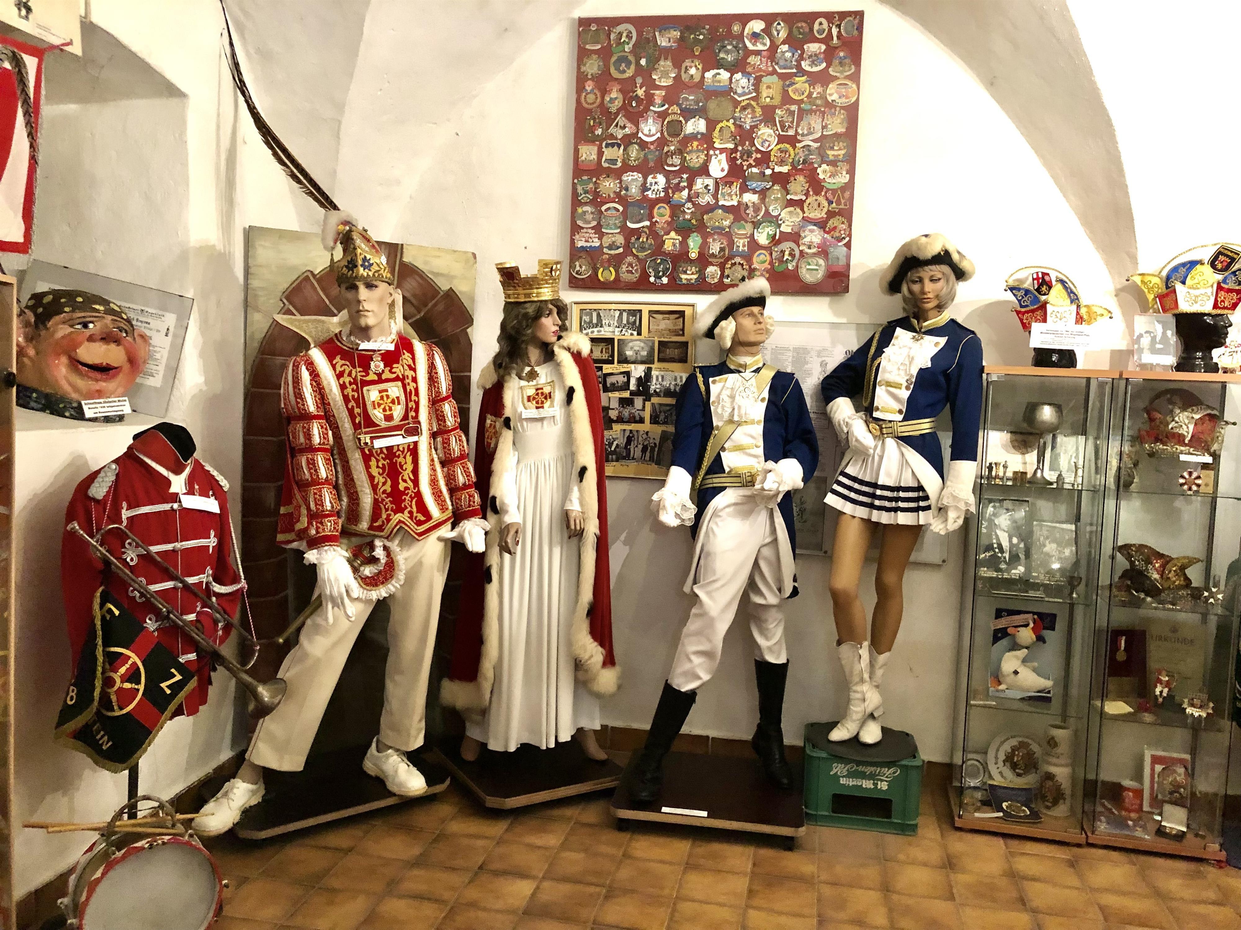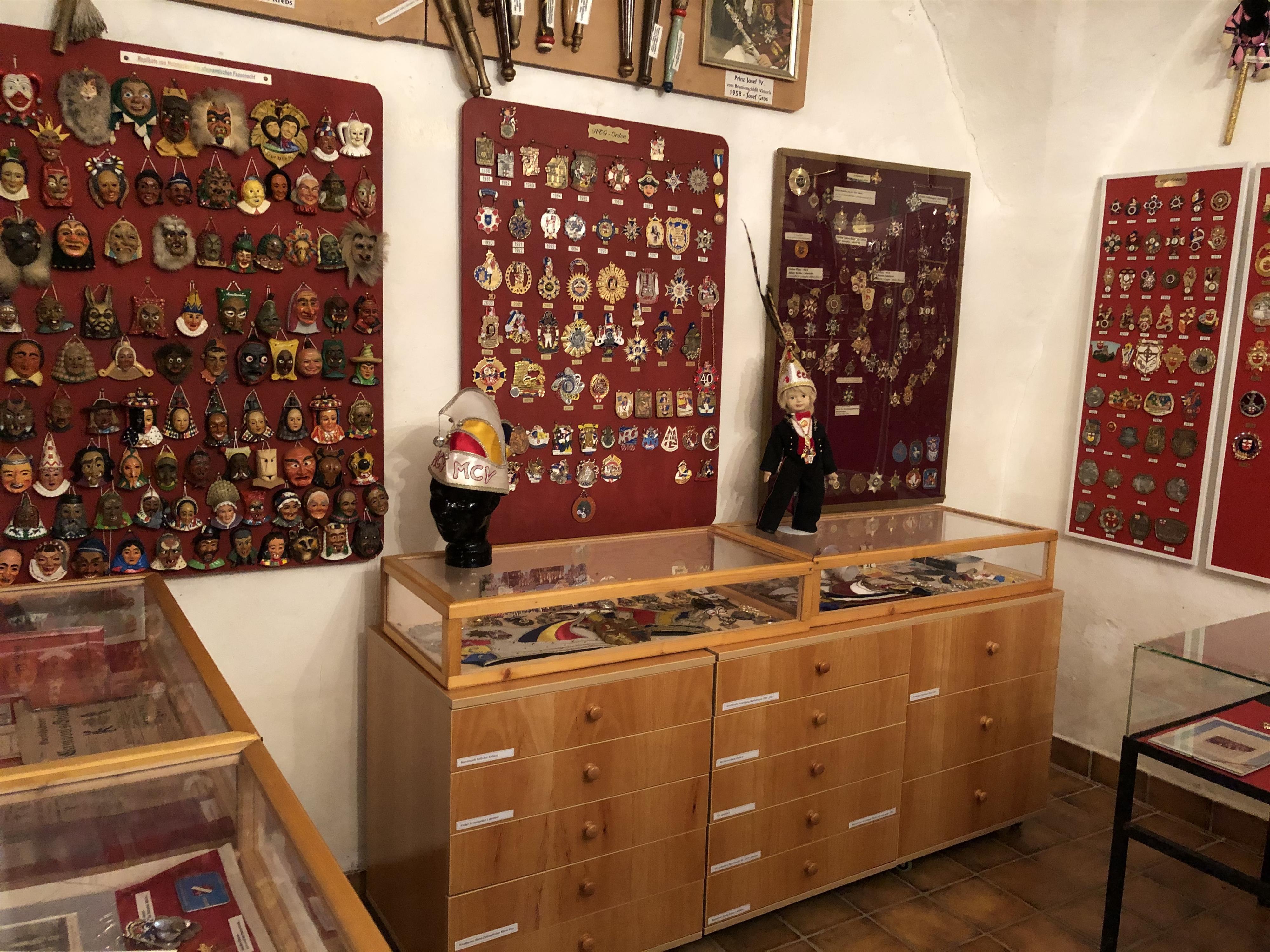 Hunderte von Karnevalsorden erzählen ihre eigene Geschichte. Natürlich sind auch die klassischen Narrenattribute wie Narrenkappen, Zepter, Uniformen und andere Kuriositäten zu bewundern.