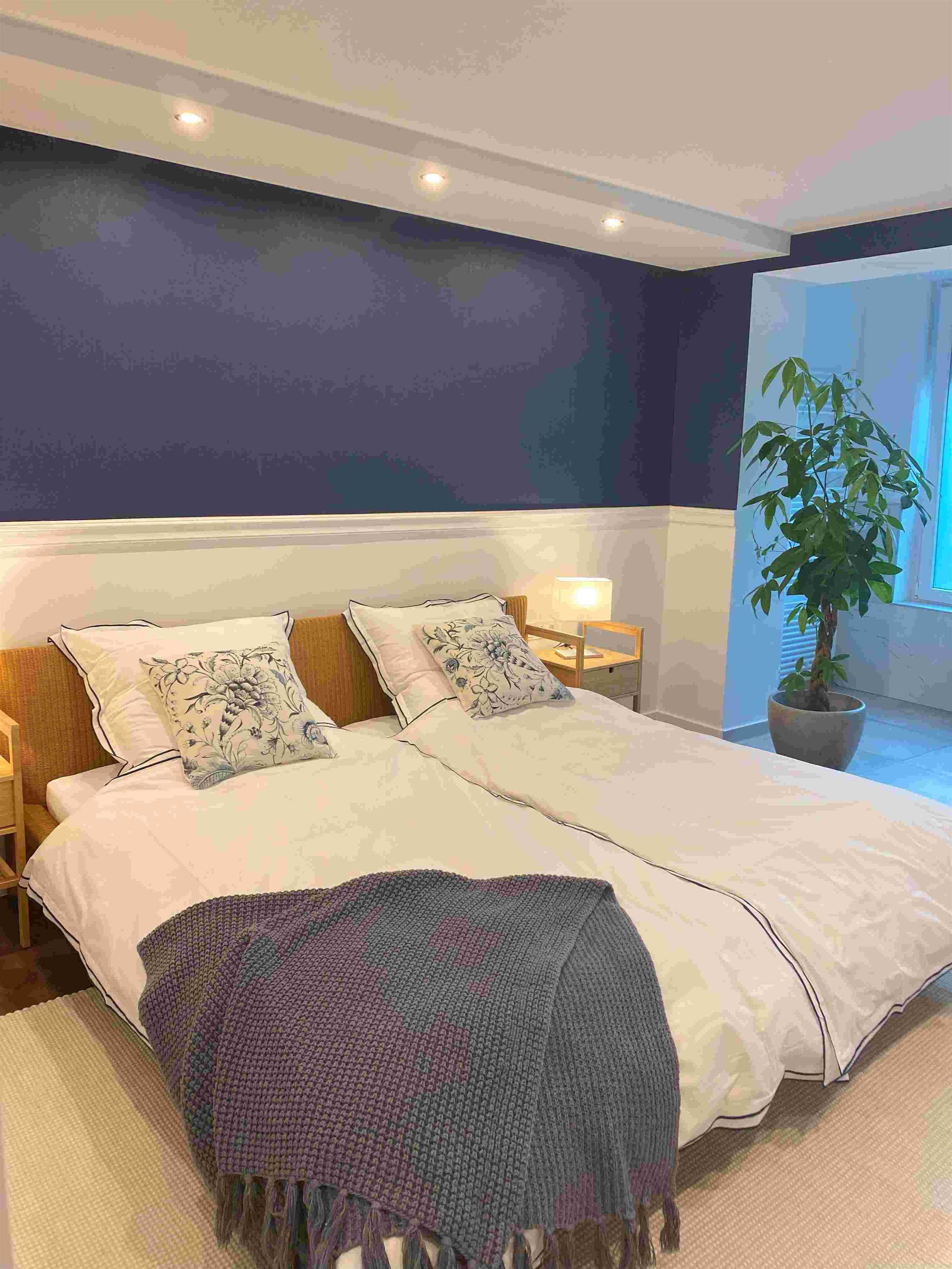 Das Schlafzimmer ist separat und beinhaltet ein voll ausge-stattetes Bad mit Dusche.