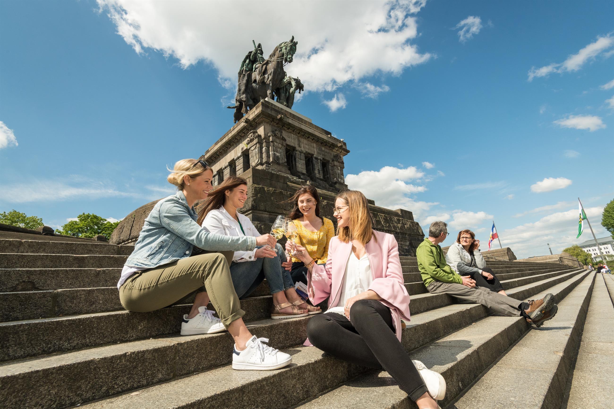 Im März 1945 durch Artilleriebeschuss zerstört, widmete Theodor Heuß den reiterlosen Sockel 1953 zum Mahnmal der deutschen Einheit um. Bis 1993 thronte hier ein Flaggenstock mit der deutschen Bundesflagge. Im Herbst 1993 wurde schließlich eine Rekonstruktion des Denkmals auf den Sockel gehoben. Das insgesamt 37 Meter hohe Monument - 14 Meter entfallen übrigens allein auf das Reiterstandbild, das Kaiser Wilhelm I. mit einem Genius zeigt - ist heute Besuchermagnet für mehr als 2 Millionen Menschen jährlich und gehört seit 2002 zum UNESCO-Welterbe „Oberes Mittelrheintal“.