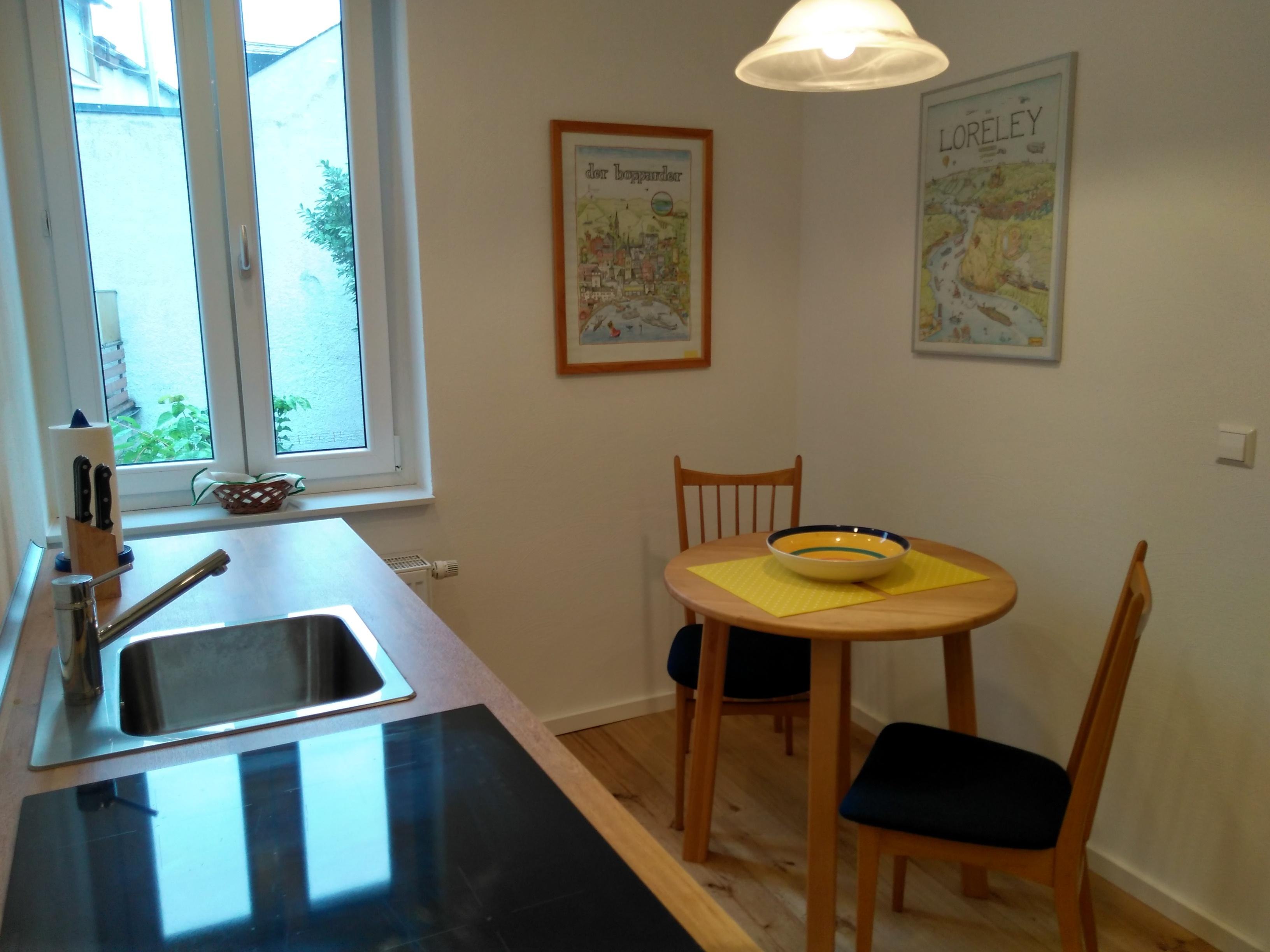 Die Ferienwohnung ist zentral gelegen. Vom Rauschen der Züge hört man wenig, da die Ferienwohnung abgeschirmt vom Haupthaus im Seitenflügel ist.