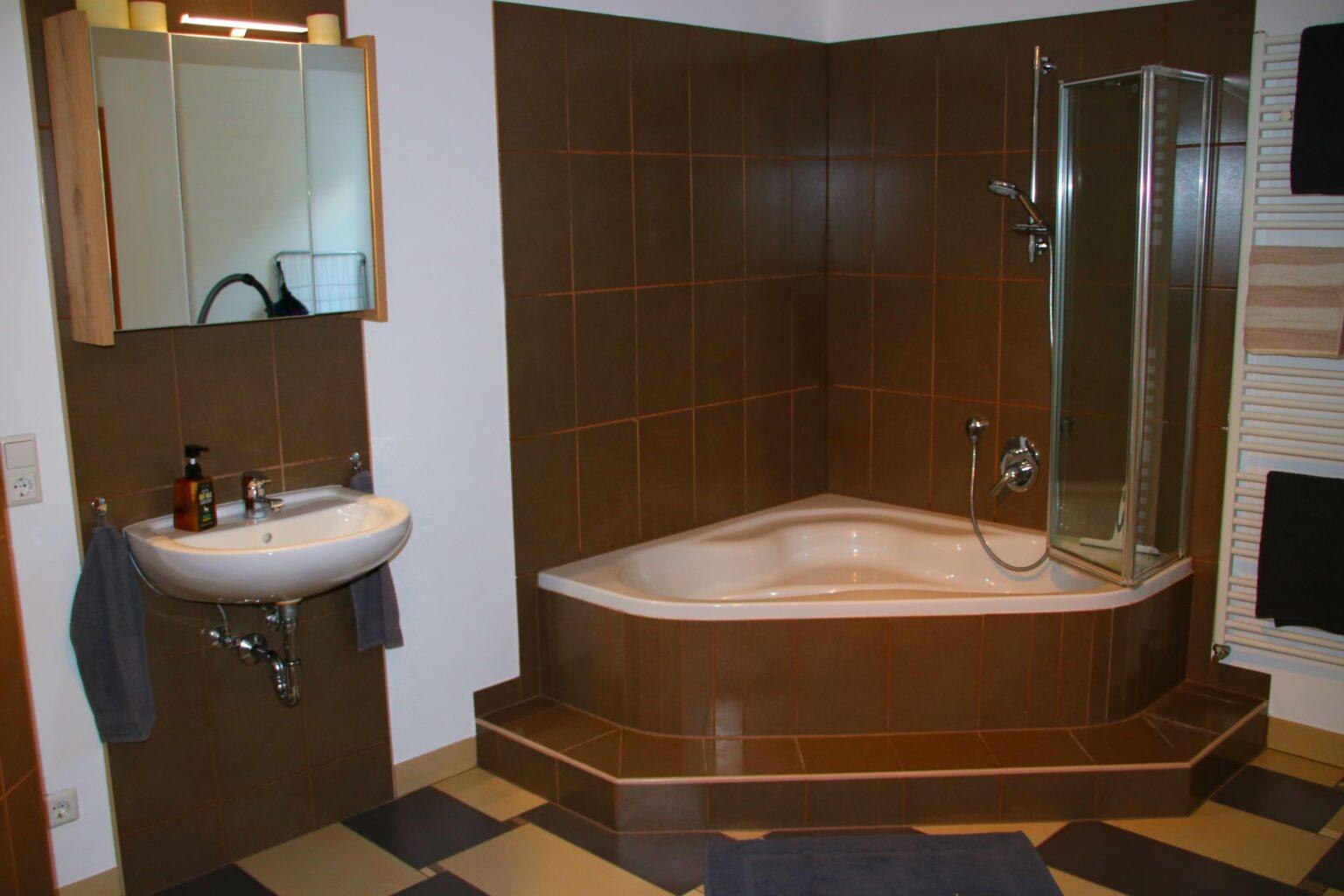 Das Badezimmer bietet eine Badewanne mit integrierter Dusche. Vorsicht, hoher Einstiegt (siehe Bilder).