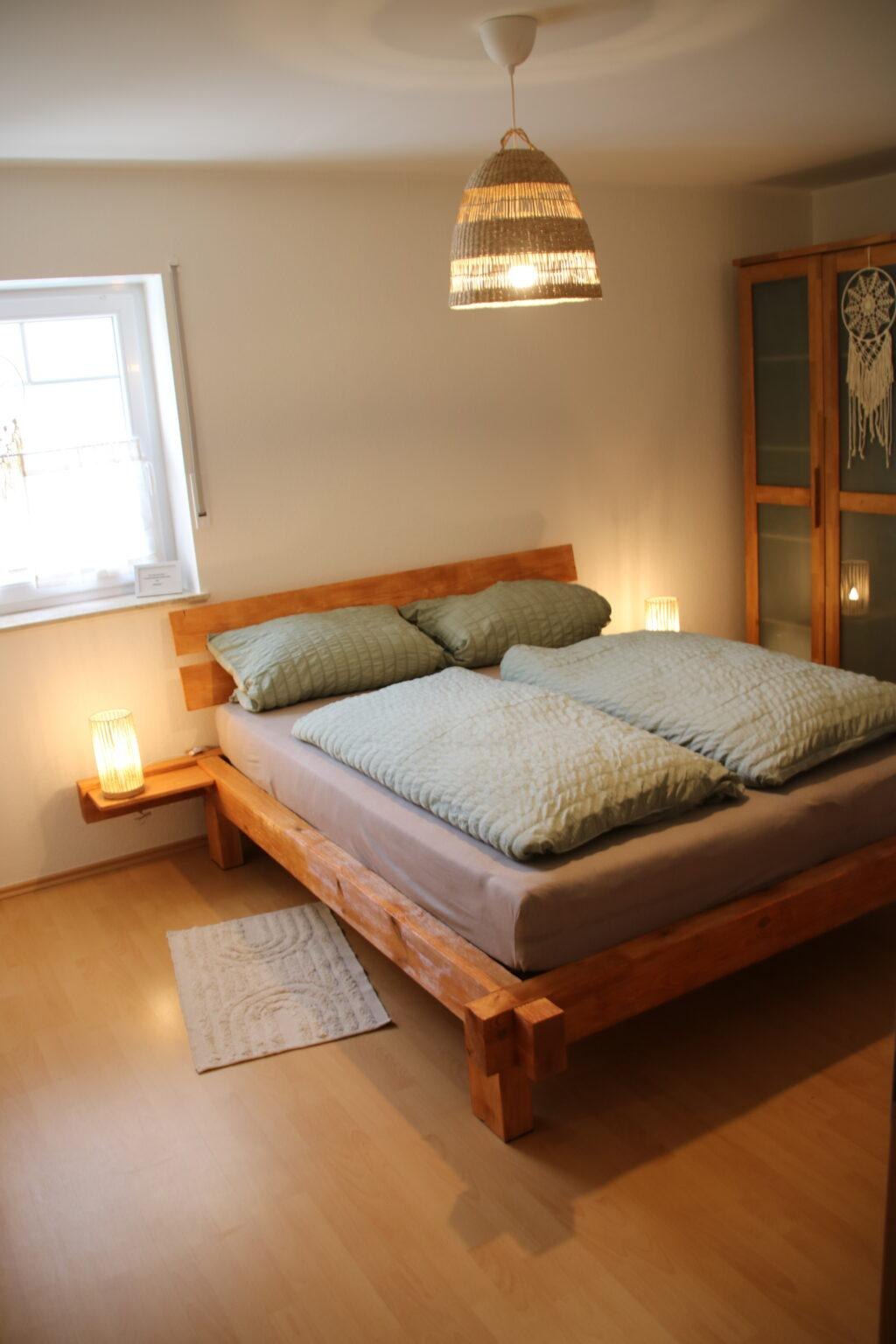 Das gemütliche Schlafzimmer ist mit einem komfortablem Doppelbett 1,60m x 2,00m ausgestattet, das aus zwei separaten Matratzen besteht. Der Raum ist liebevoll eingerichtet und verfügt über ausreichend Stauraum für Ihre Kleidung. Der Schlafraum kann mit Rollos verdunkelt werden. Zusätzliche warme Decken liegen auch zur Verfügung.