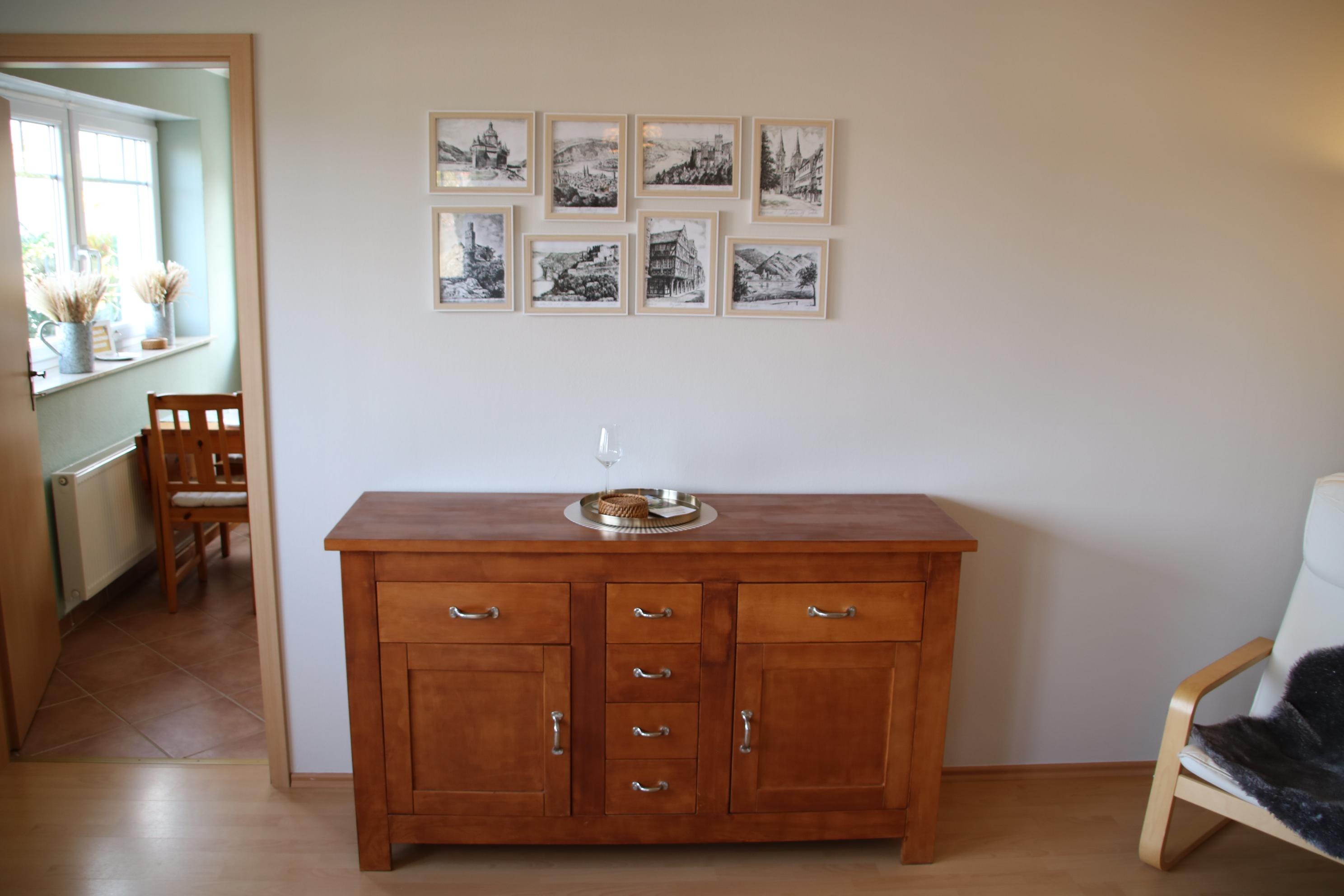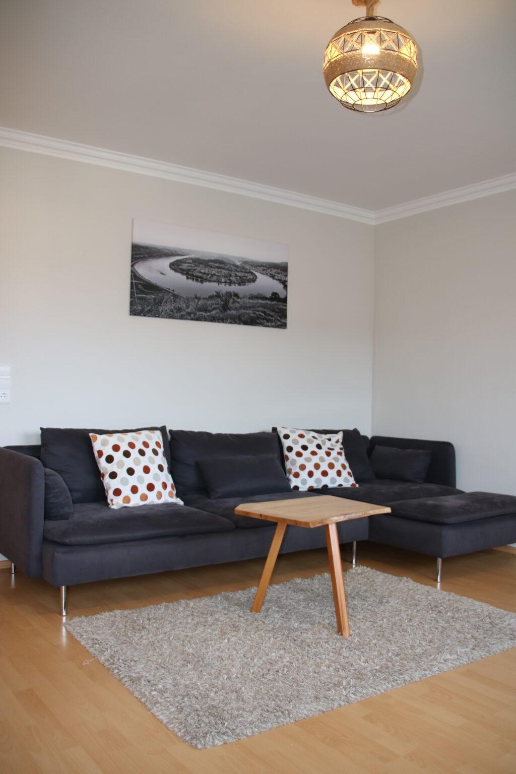 Das gemütliche Wohnzimmer lädt mit einer bequemen Eckcouch und einem Flachbild TV zum entspannen ein. In der Leseecke finden Sie eine Infomappe, Bücher über Wander- und Fahrradtouren, sowie Informationen über die Region Mittelrhein. Für gesellige Abende stehen Ihnen Gesellschaftsspiele zur Verfügung. Genießen Sie den Ausblick ins Grüne und lassen Sie die Seele baumeln.