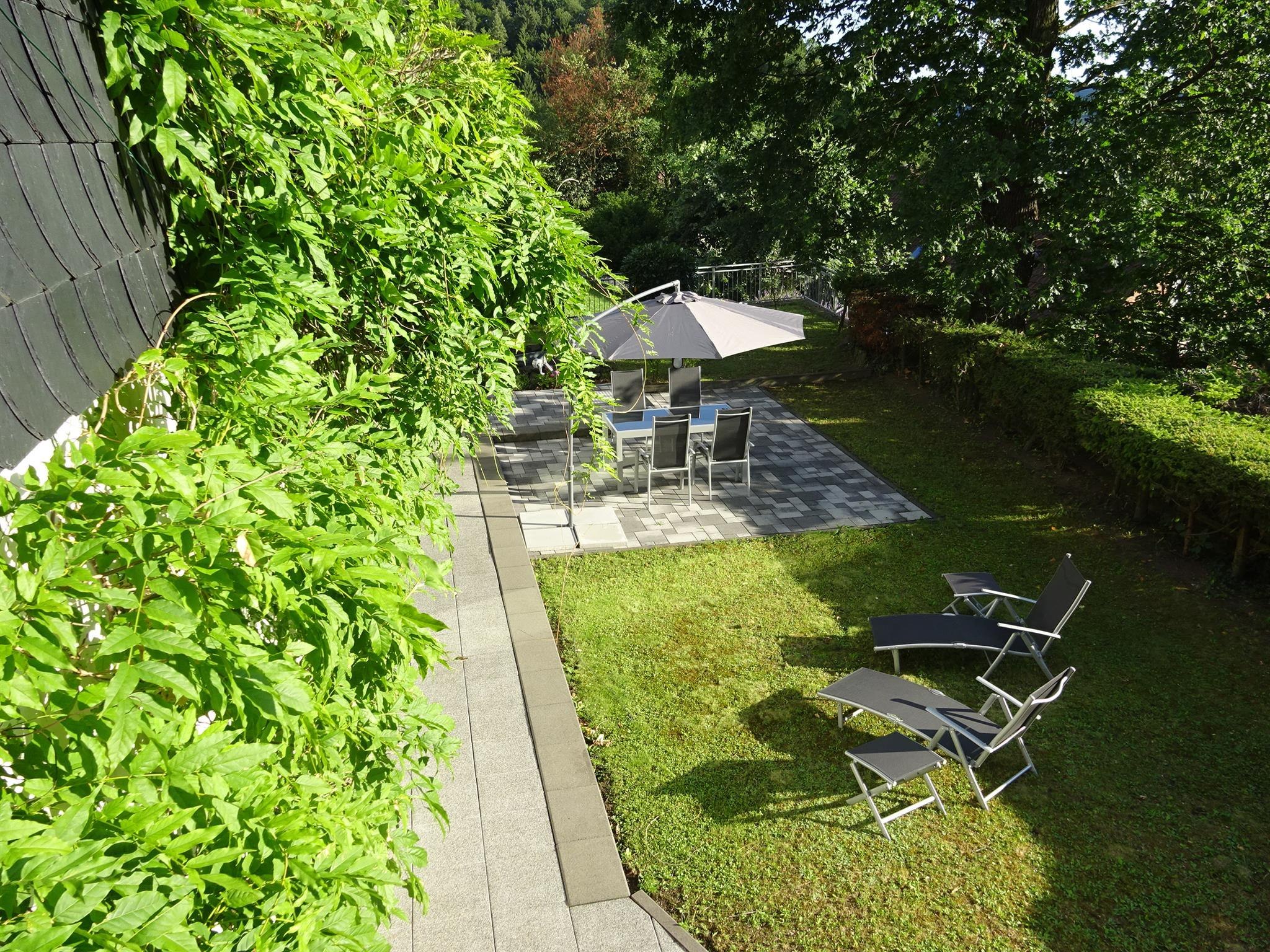 Ausstattung Wohnung, ca 55 qm auf 1 Etage für 2-4 Personen plus Gartenterrasse. Moderne Kleinküche mit Gefrierkombination, Ceranfeld, Mikrowelle komplett eingerichtet. Wohnzimmer mit großem Esstisch und Schlafcouch für 2 Personen. 1 Doppelschlafzimmer mit großem Bett, 5* Hotelmatratze . Badezimmer mit Dusche und WC. TV im Wohnzimmer, W-Lan Zugang. Waschkeller mit Waschmaschine und Trockner. Gartenterrasse mit komfortabler Terrassenmöblierung , Grill. Abstellplätze für Fahrräder und Auto vorhanden. Nichtraucherwohnung. Kinder bis 5 Jahre frei!
