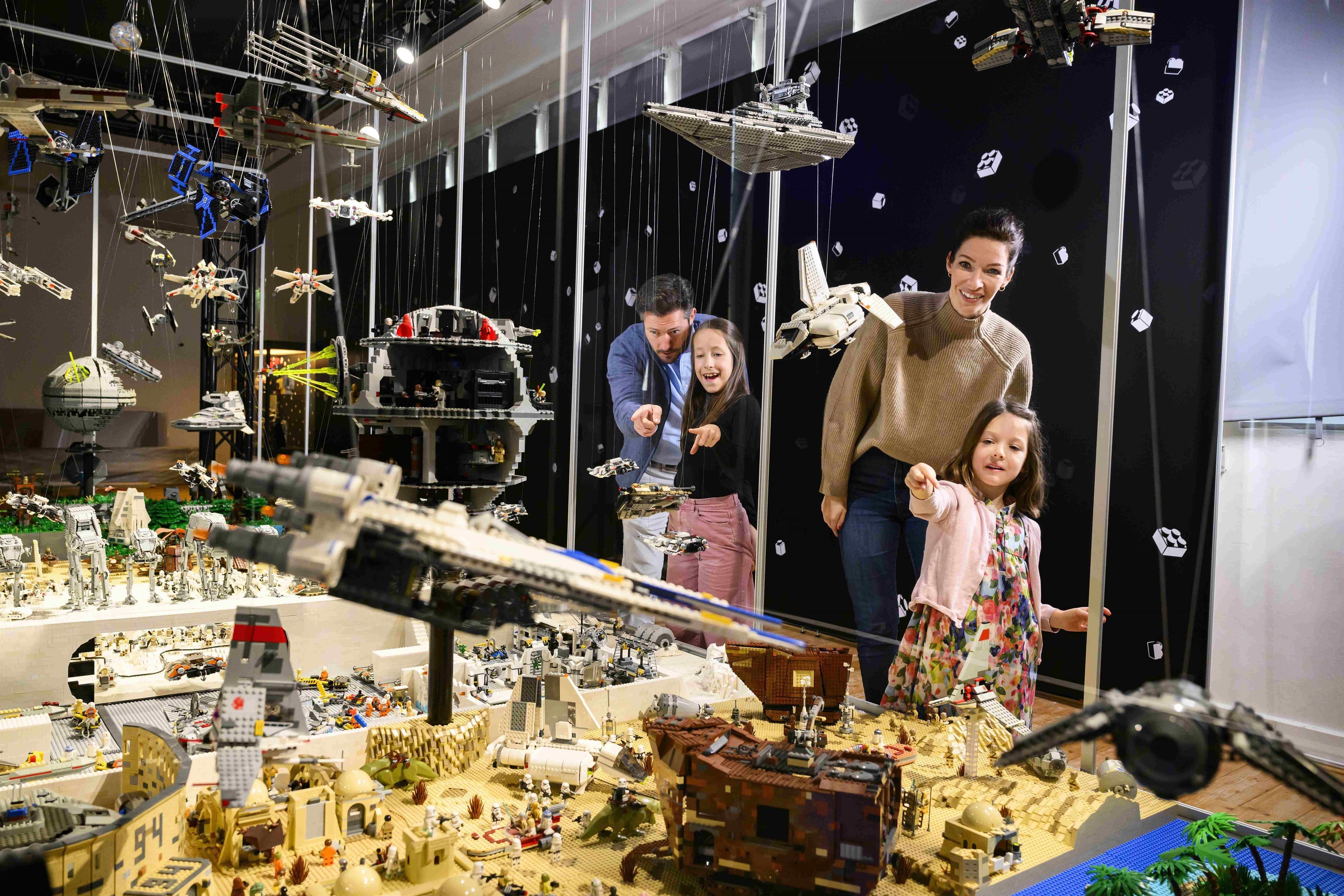 Mit Hilfe virtueller Mitmachstationen versetzen Besucher sich ins Weltall. Kleine und große Fans können die bunten Steine in der Ausstellung nicht nur anschauen, eine „Bau ecke“ lädt zum Spielen und Erschaffen eigener Welten ein. An Selfie-Wänden werden Gäste selbst zum LEGO® Star.