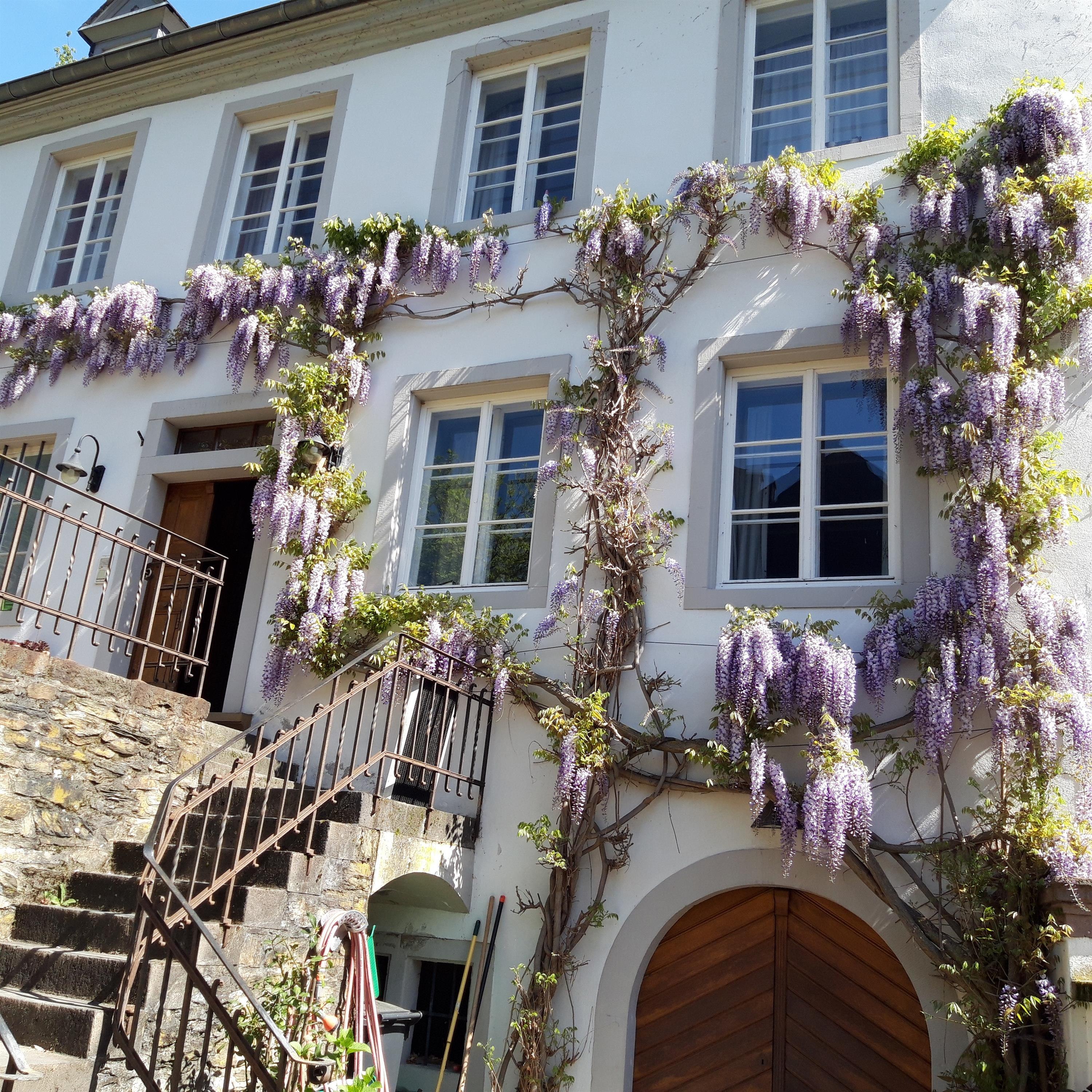 Der rund 1.000 Quadratmeter große Privatgarten gehört zu dem denkmalgeschützten Alten Pfarrhaus von Oberdiebach aus dem Jahr 1773.