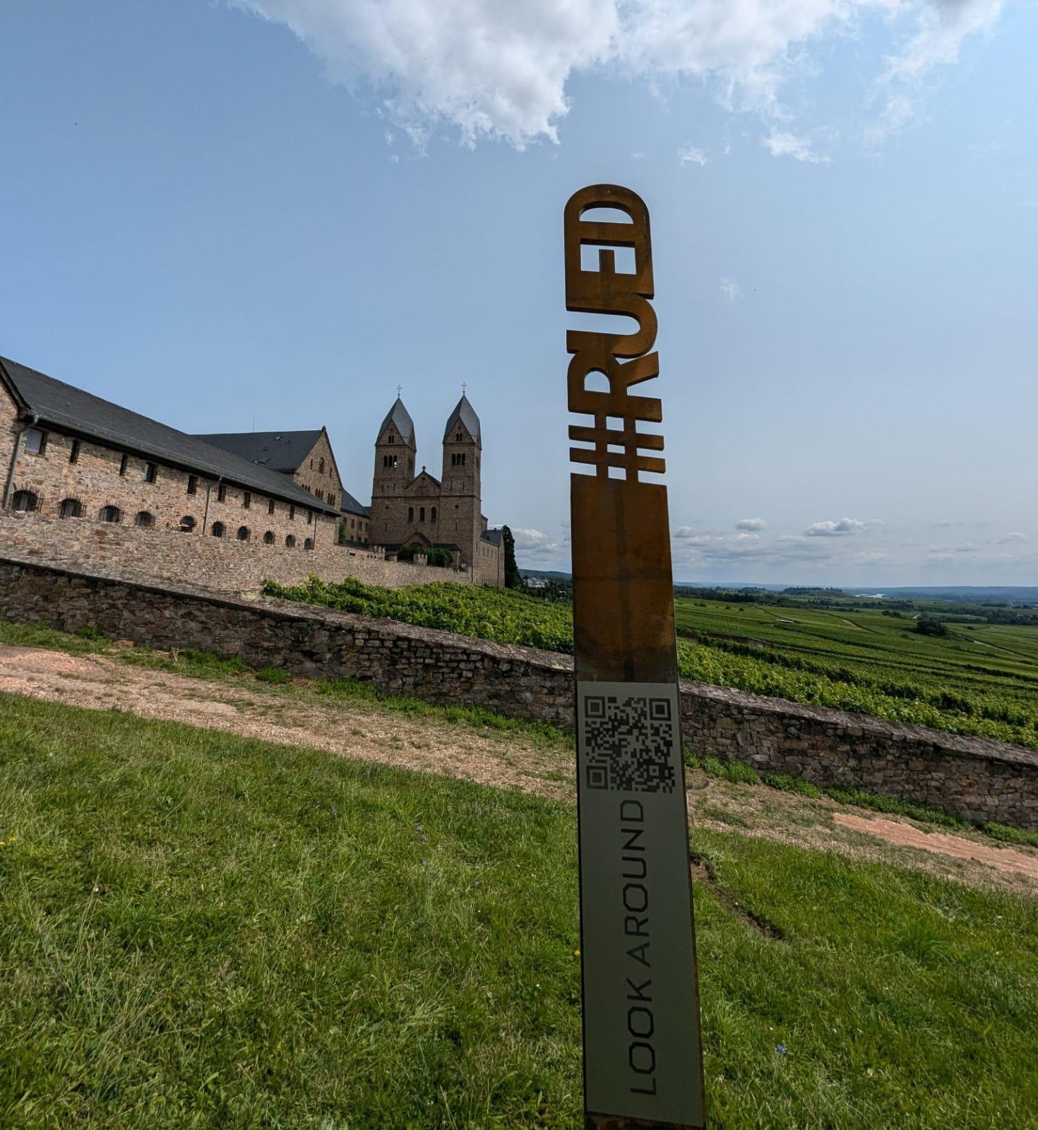 Fotostele mit Blickrichtung zur Abtei St. Hildegard