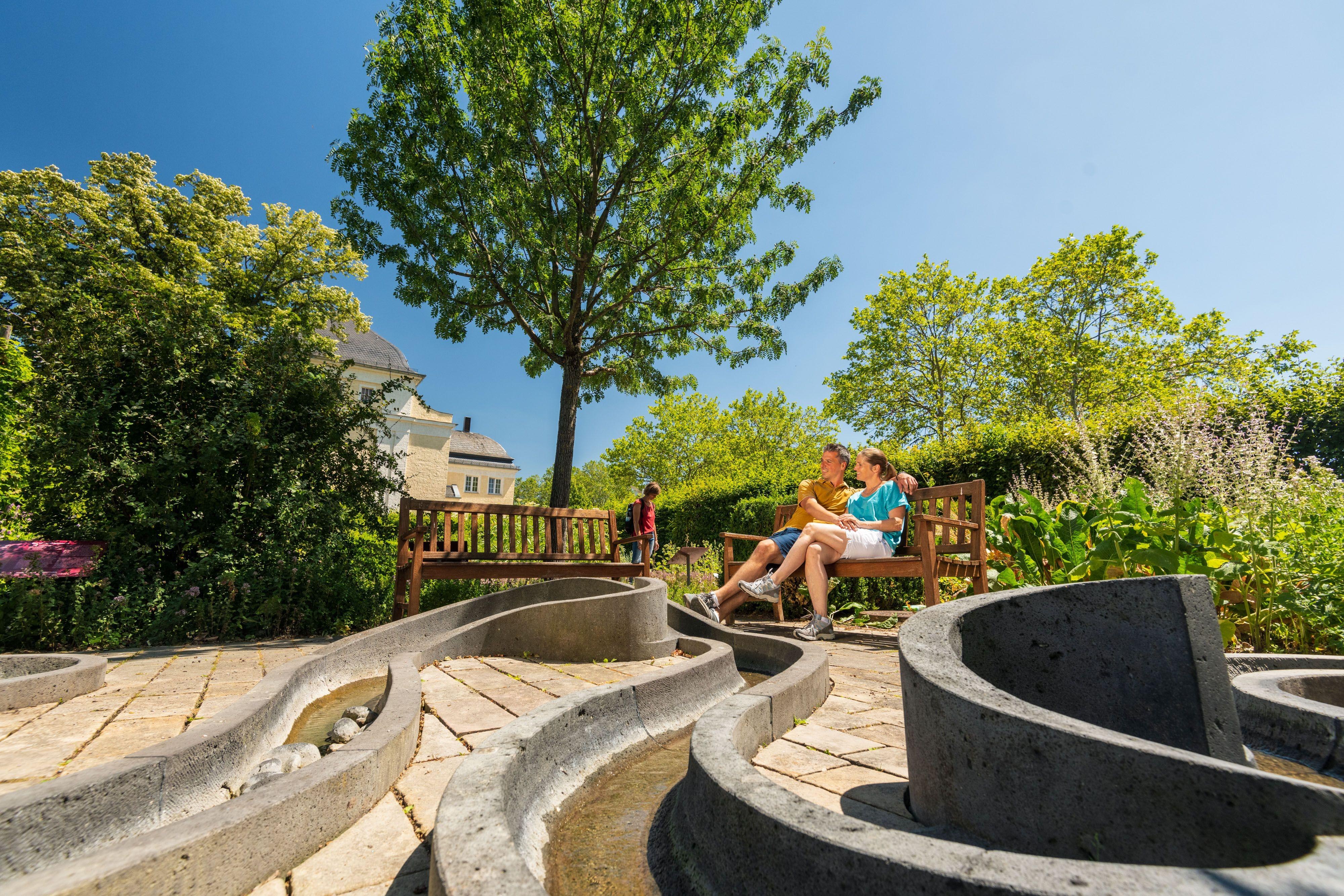 Als Ergänzung zur Hildegard -Ausstellung im benachbarten Museum am Strom zeigt der Garten zahlreiche Pflanzen, die Hildegard in ihrer Naturkunde („Physica") beschrieben hat. In dieser bedeutenden Sammlung hat die gelehrte Benediktinerin beinahe 300 Kräuter, Sträucher und Bäume mit ihrer (Heil-) Wirkung auf den Menschen beschrieben. Leider ist das Werk nur in spätmittelalterlichen Abschriften überliefert, so dass heute niemand mehr den „Originaltext“ der Hildegard von Bingen kennt. Der didaktisch aufgebaute Hildegarten stellt in insgesamt 15 Themenbeeten und 8 Einzelbeeten das „Buch von den Pflanzen“ und das „Buch von den Bäumen“ aus der "Physica" vor.