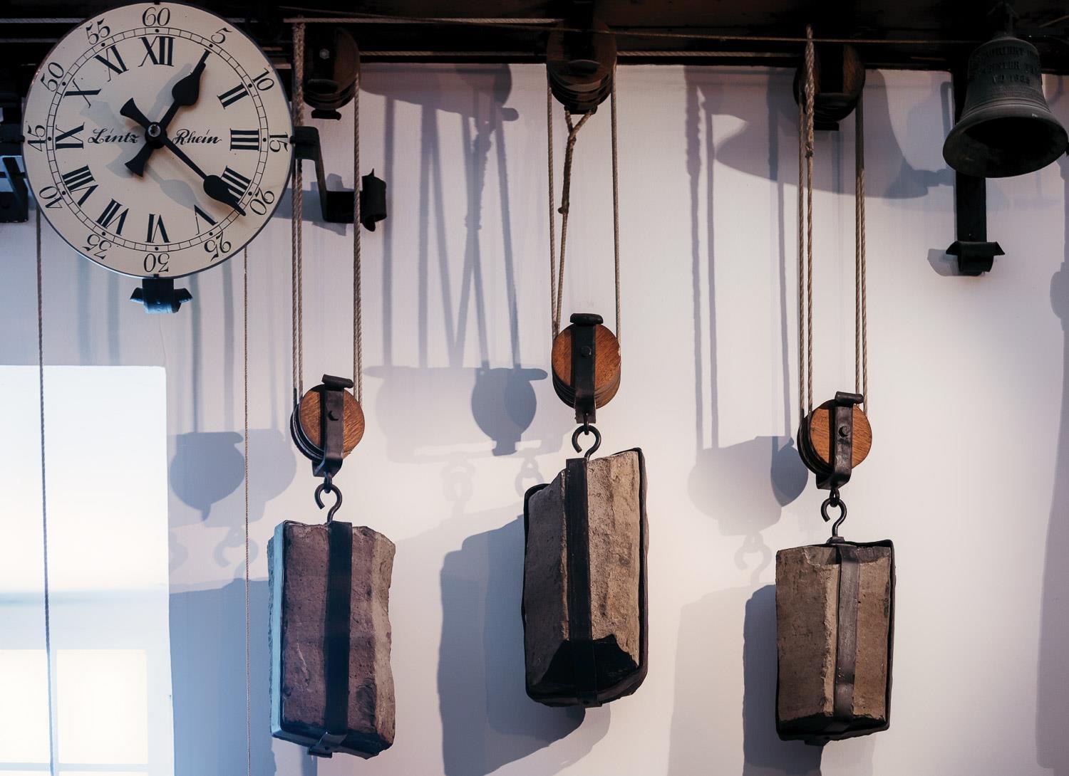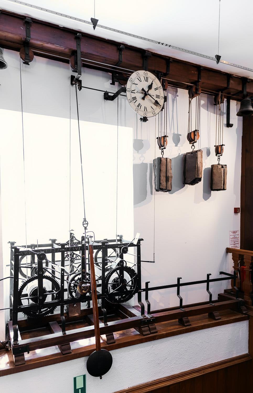 Die besondere, schmiedeeiserne Rathausuhr stammt aus dem Jahre 1737 und wird durch Basaltsteine gesteuert. Ursprünglich installiert für die Ratskapelle wurde das aufwendige Uhrwerk nach deren Abriss im Rathaus platziert. Das besondere Highlight ist das historische Glockenspiel. Die 23 Glocken erklingen täglich um 12.15 Uhr, 15.15 Uhr und 18.15 Uhr mit unterschiedlichen Liedern und Melodien.