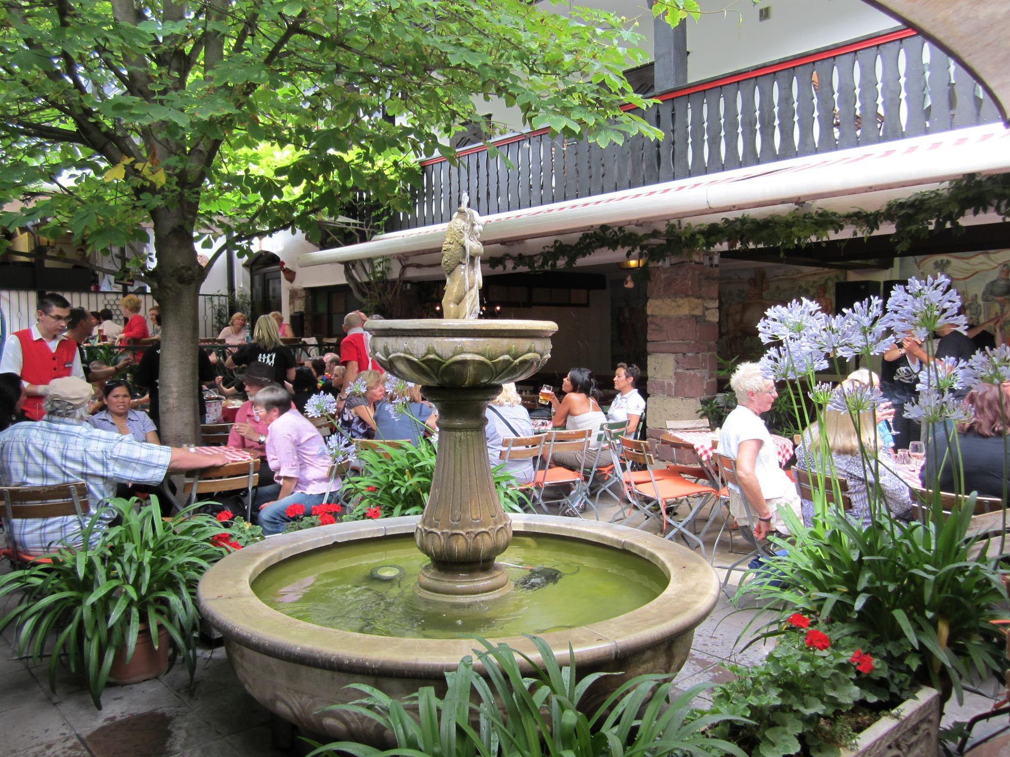 Bei Gästen aus aller Welt beliebtes Hotel an der berühmten Drosselgasse mit traditionsreichem Weinrestaurant und stimmungsvollem Weingarten.