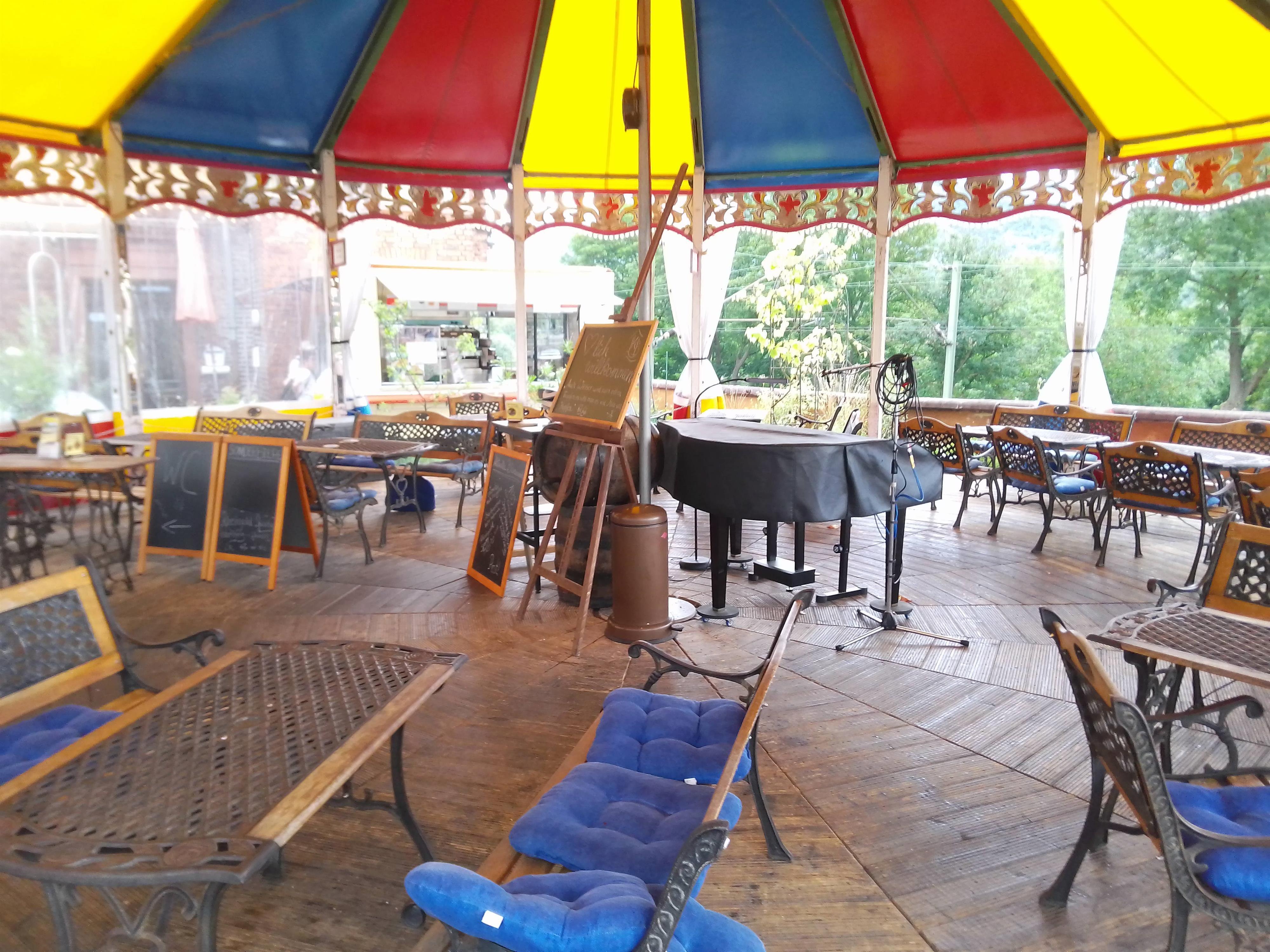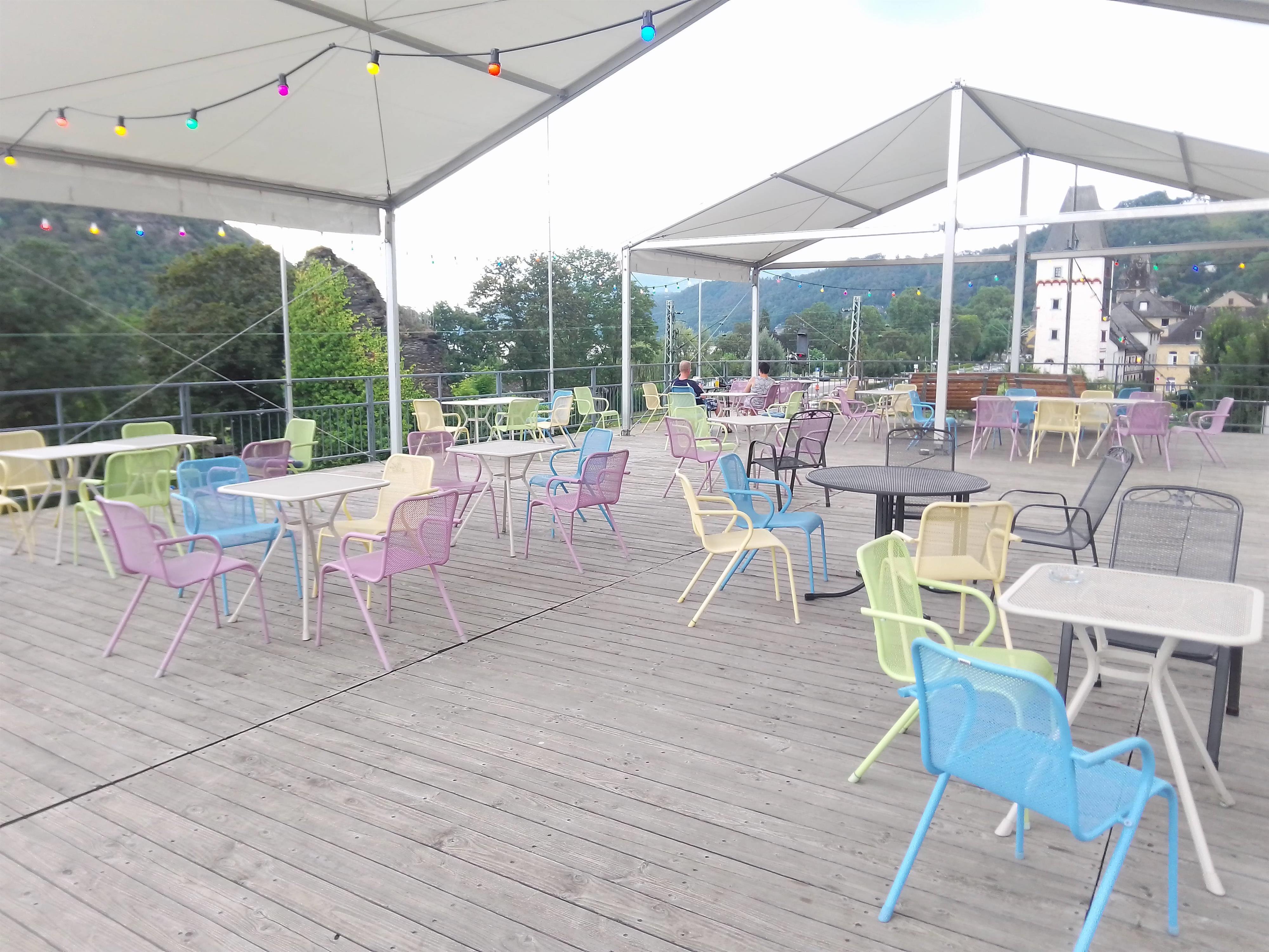 Der Veranstaltungsraum ist eine Spielstätte der Bacharacher Meister-Konzerte. Der Biergarten in einem umgebauten Kinderkarussel bietet gute Sicht auf den Rhein.
