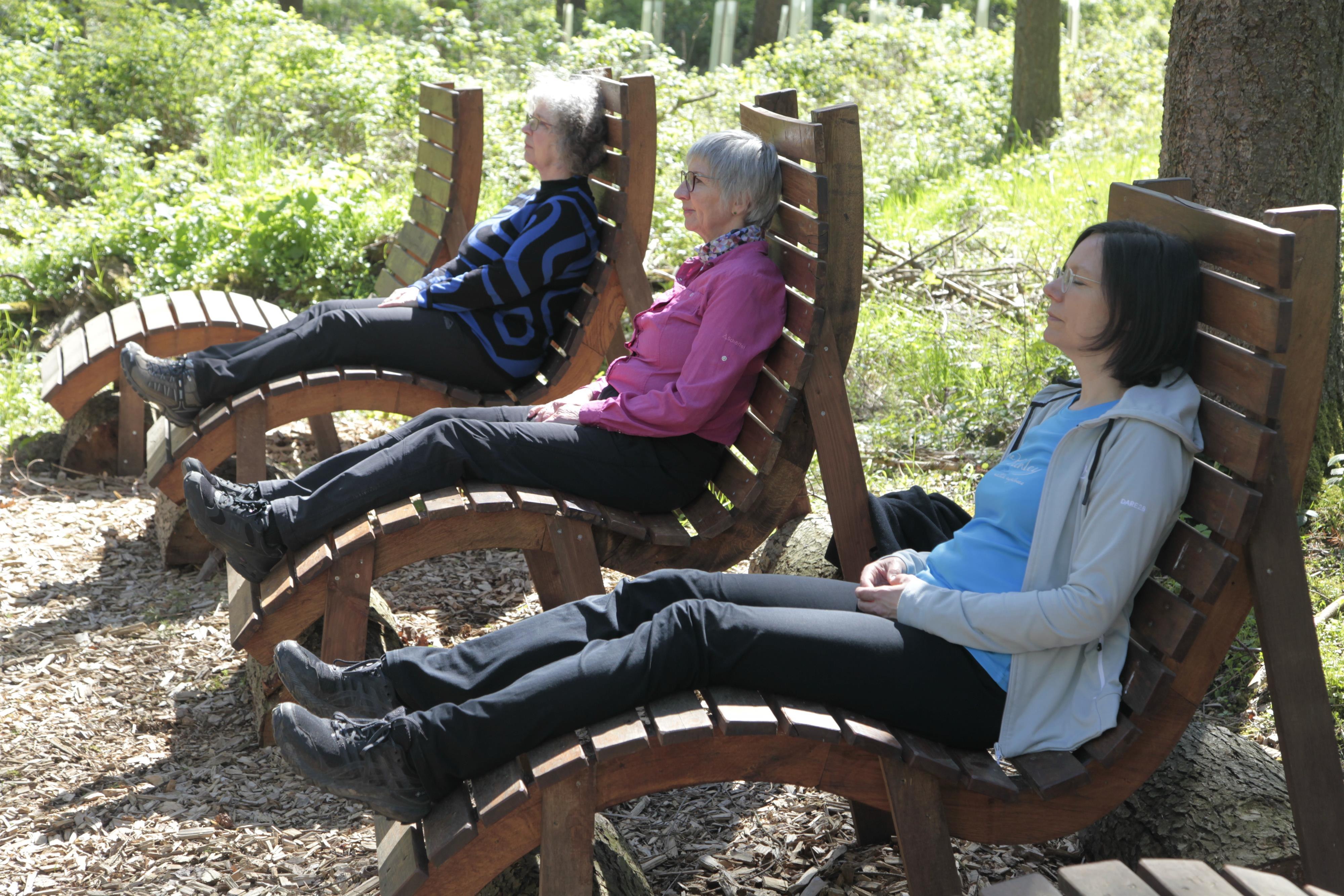 Die Heilkraft des Waldes und Achtsamkeitsübungen entlang des Weges reduzieren Stress, verbessern die Lebensqualität und steigern das Wohlbefinden. - Fitness-Parcours mit Sturzprävention