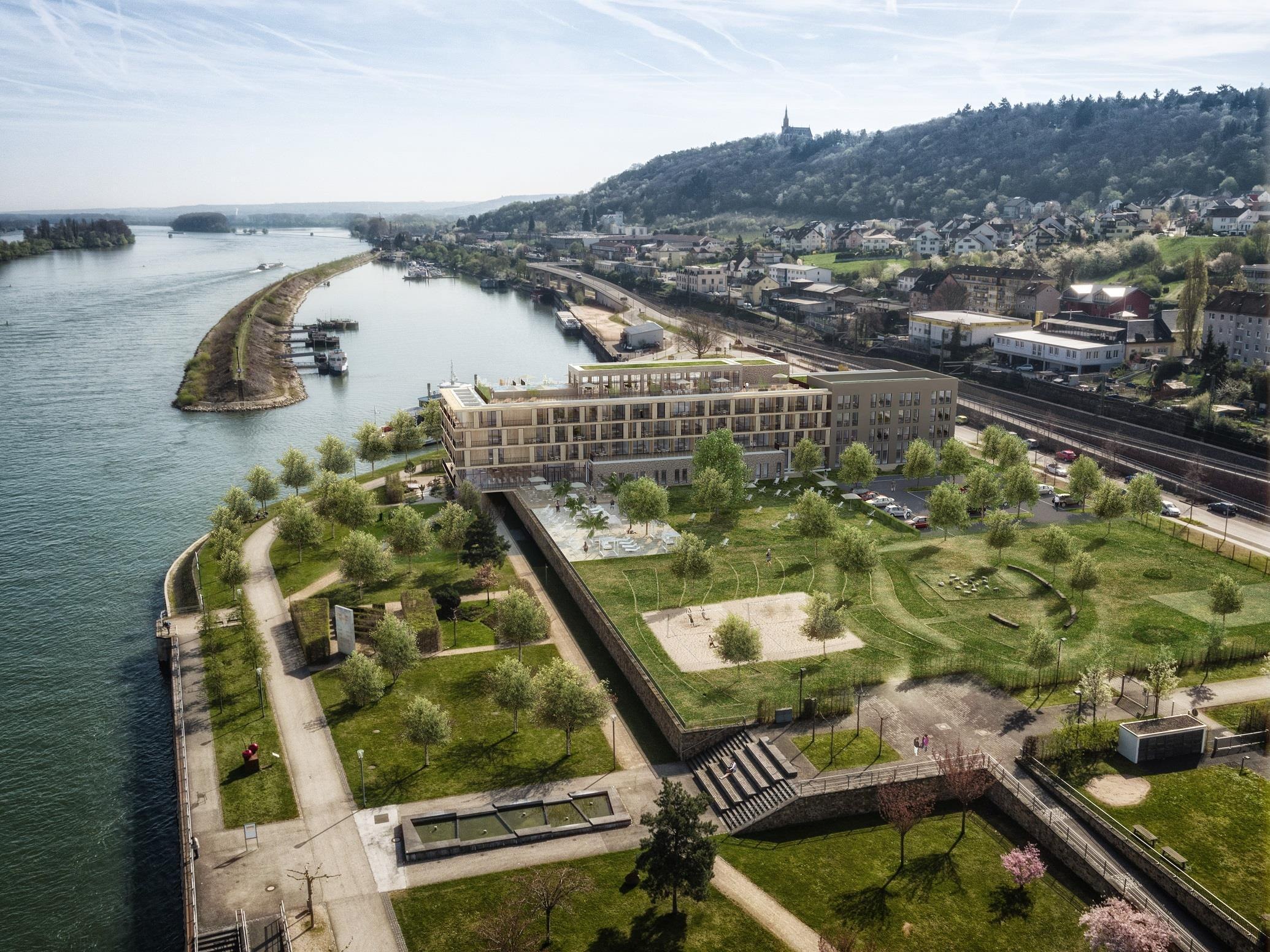 Eastcoastflair direkt am Rheinufer in über 114 Kojen, alle maritim getakelten Zimmerkategorien&Suiten sind unterschiedlich eingerichtet. Vineyard-Rooftop mit Plunge Pool und weitem Blick über das Wasser, Silentrooms und Treatments nach „Holy Hilde“, kreative Freiräume zum Tagen und Feiern mit Business-Infrastruktur, kostenfreies W-LAN im ganzen Hotel, kostenloser Mini- und Fahrradverleih, Joggingcorner