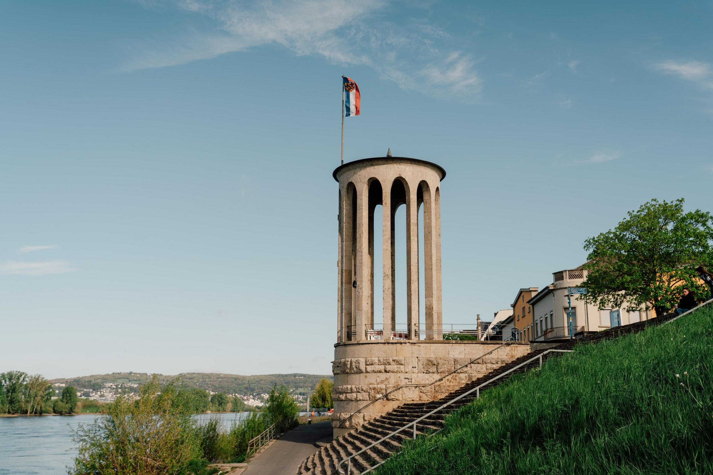 Mit dem Bau des Hochwasserschutzdeiches 1928-1931 erfuhr die Rheinansicht von Neuwied eine gründliche Veränderung. Der Deich schützt den Stadtkern und seine Umgebung vor Überflutung. 600 Meter ist sie lang, die in hellen und dunklen Streifen gequaderte Deichmauer von der Schloß- bis zur Friedrichstraße mit ihren zwei großen Tordurchlässen und dem schlanken Pegelturm, dem sich eine breite Bootstreppe anschließt. Während der Pegelturm selbst eine reine Schmuckarchitektur darstellt und als werbendes Wahrzeichen von Neuwied gilt, befindet sich unter ihm, unsichtbar im Mauerwerk verborgen, eine Pegelanlage für den Deich, jedoch nicht für die Schifffahrt.