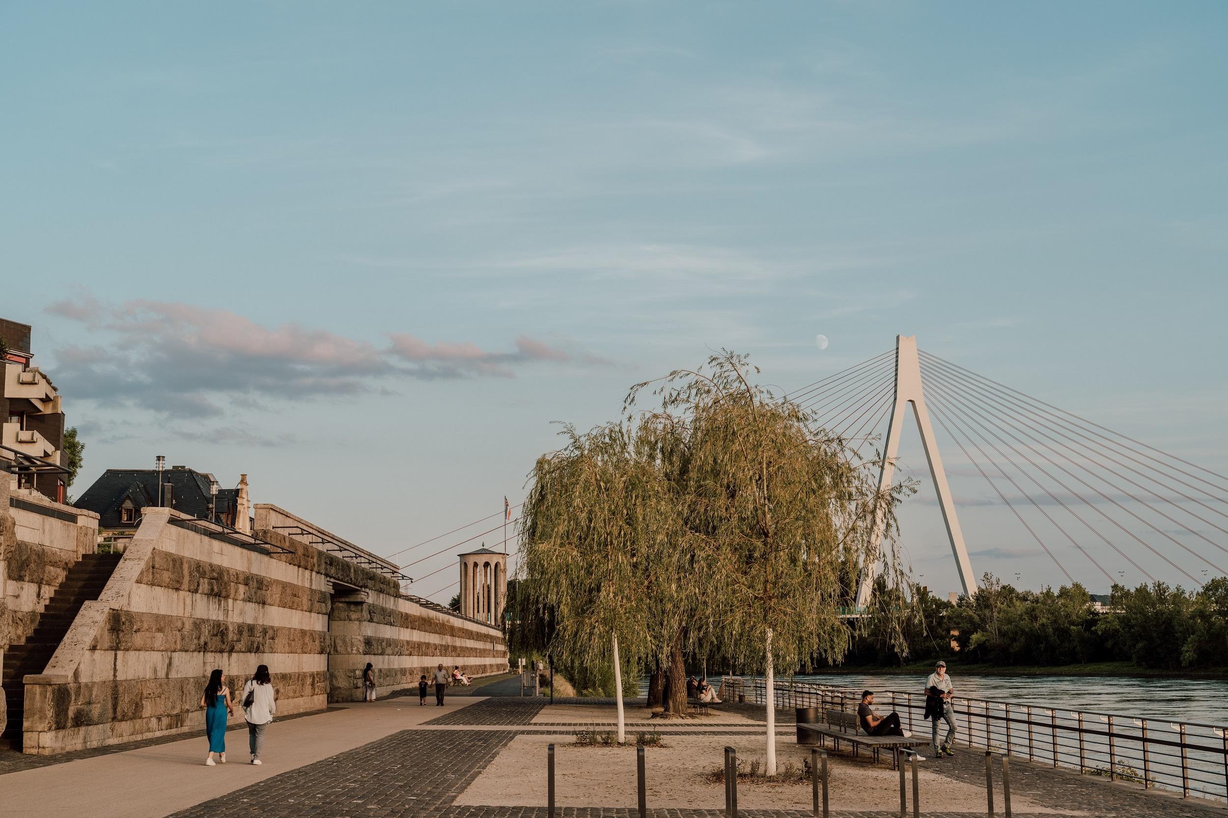 Auf der 500 Meter langen Deichmauer vor der Innenstadt befinden sich der Pegelturm