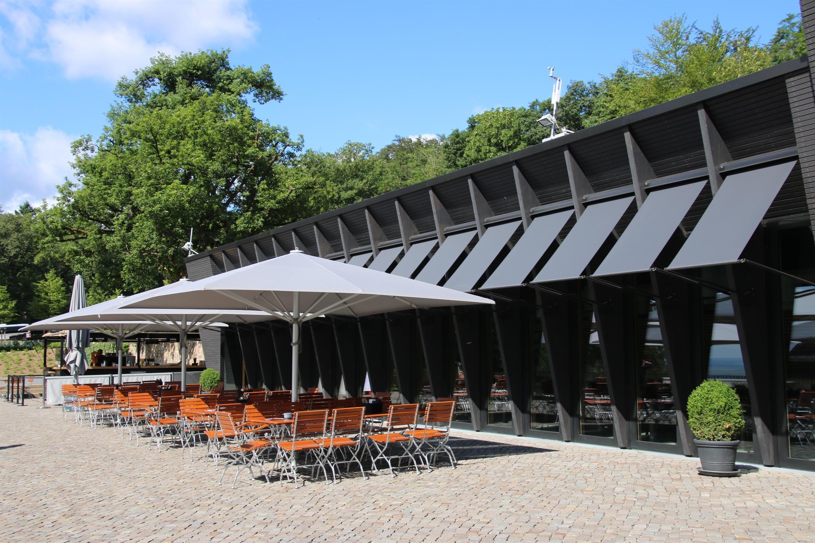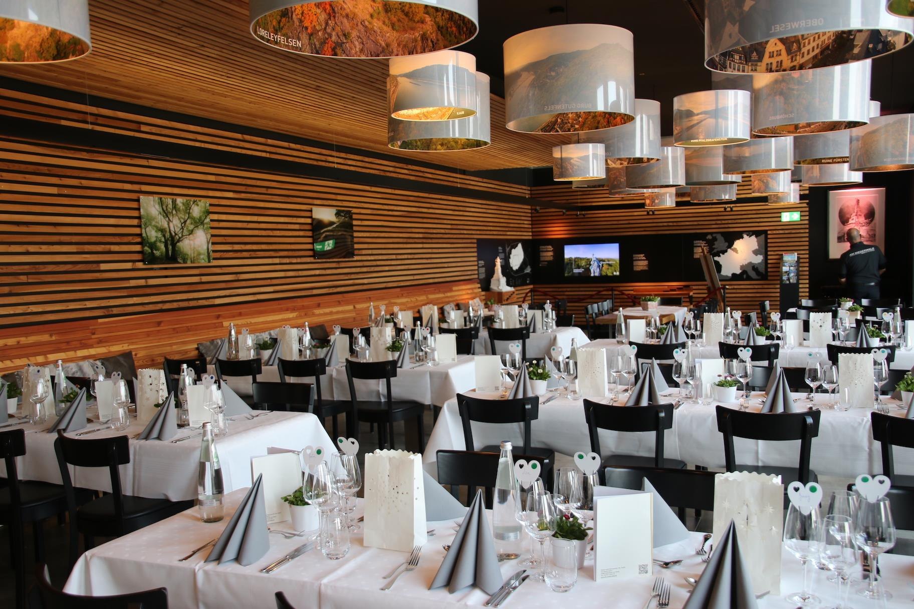 Unser modernes und nachhaltig neu gebautes Restaurant (Holzhaus Baujahr 2016) ist fußläufig gelegen zwischen dem Niederwalddenkmal und der Bergstation der Seilbahn. Bequeme Anreise mit Bus, PKW oder Schiff und Seilbahn.