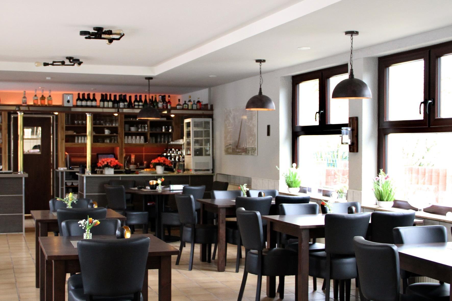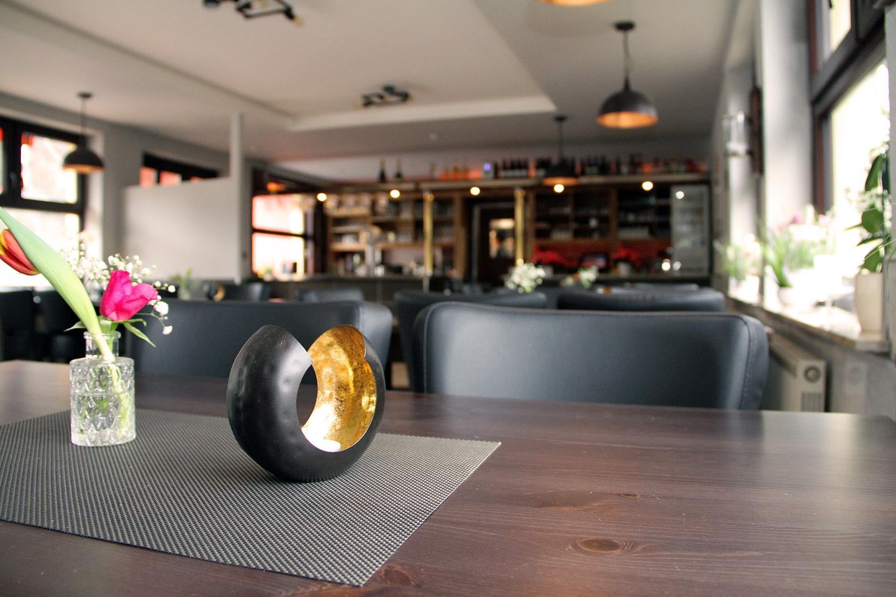 Das modern, rustikale Restaurant bietet Sitzgelegenheiten für bis zu 40 Personen, mit unmittelbaren Blick auf den herrlichen Rhein.