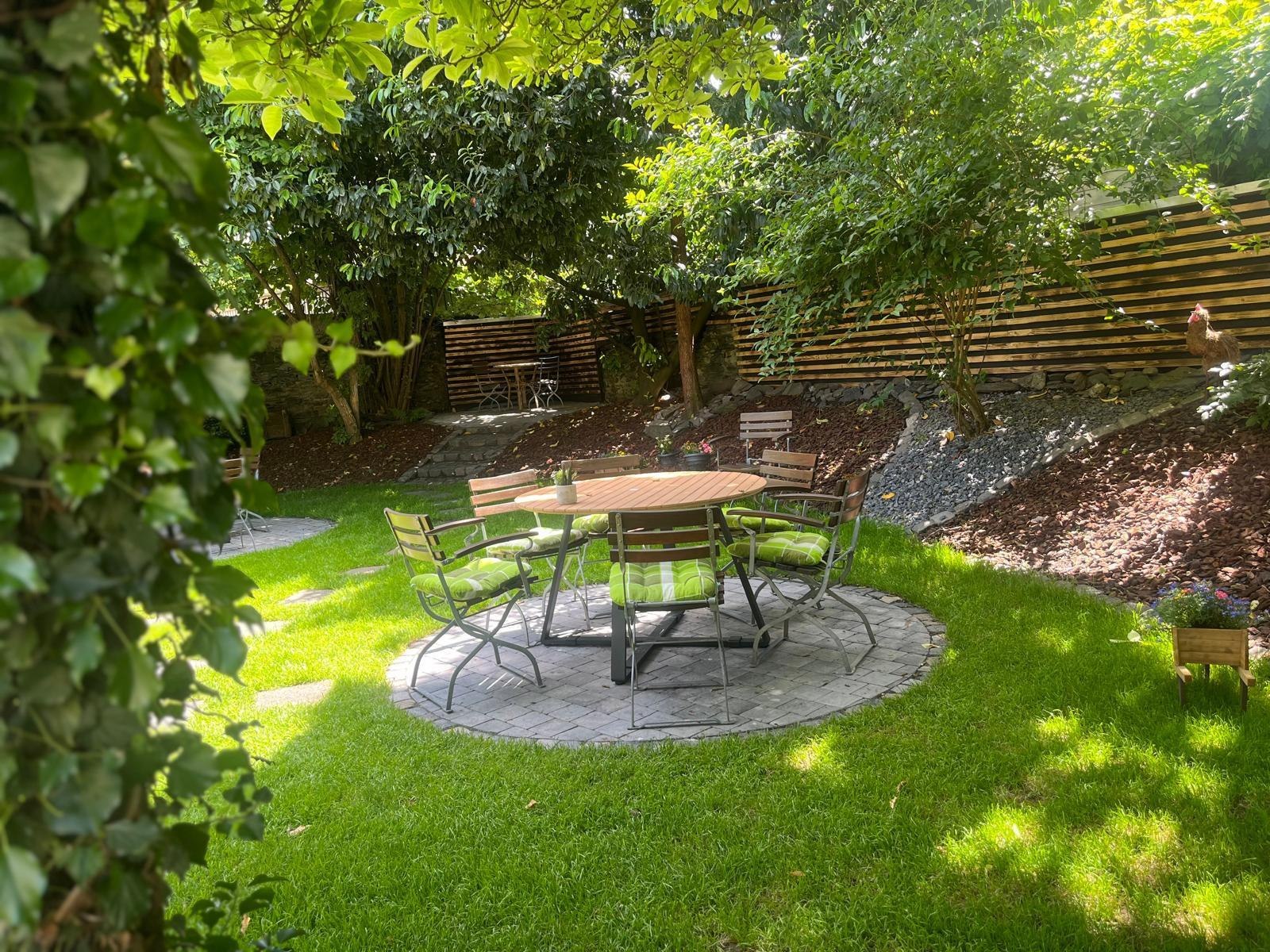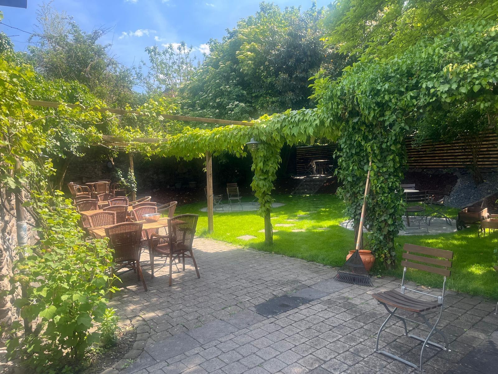 Der schattige und luftige Biergarten, umgeben von mittelalterlichem Gemäuer, im direkten Umfeld der historischen Umgebung Andernachs, überzeugt mit freundlichem Personal und vorzüglichem Essen und Getränken.