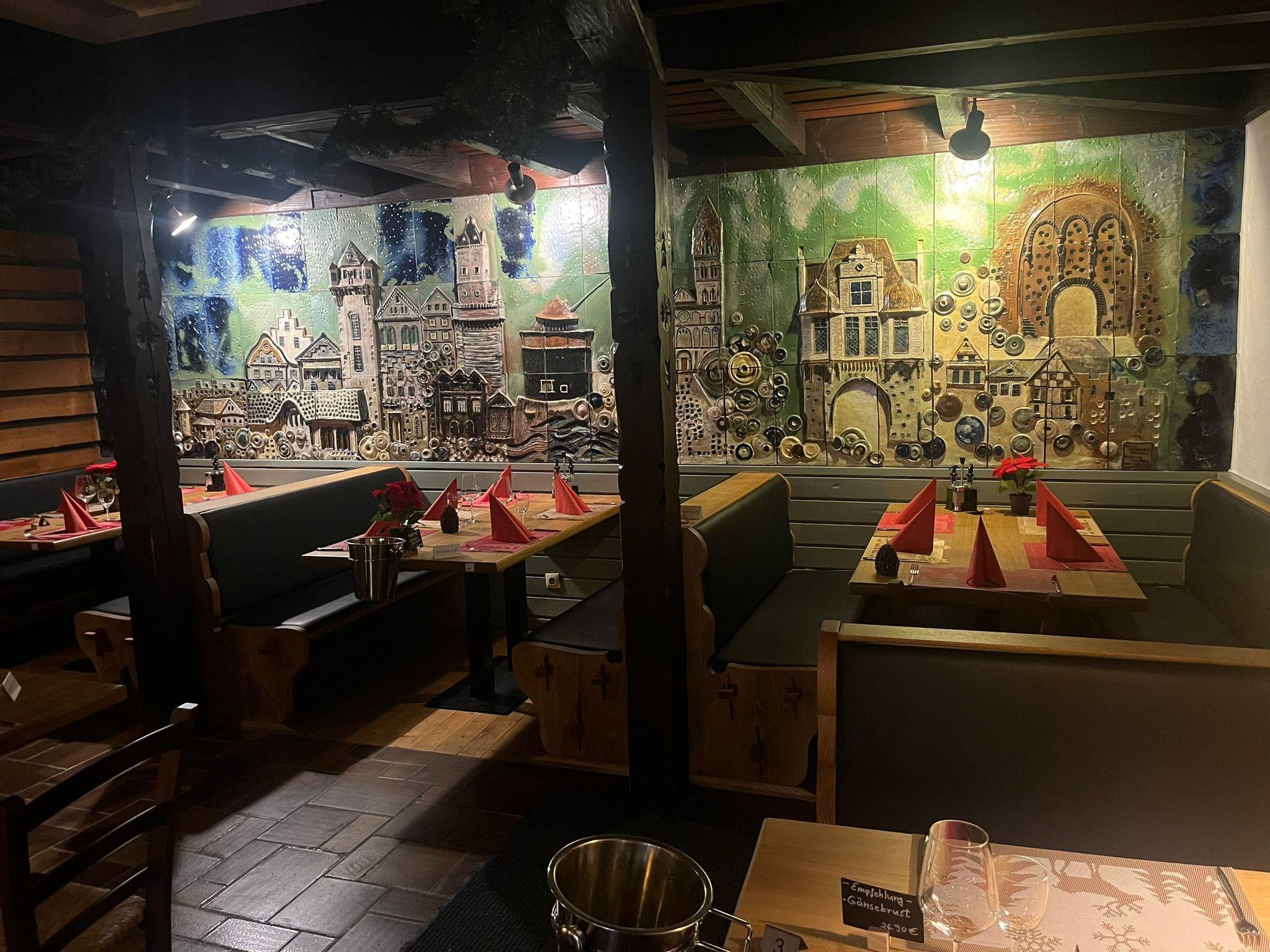 Im Nahbereich von Mariendom, Runder Turm und Historischer Garten bieten wir einen Treffpunkt für gepflegte Gastronomie und Gastlichkeit. Das Lokal mit einer bemerkenswerten Reliefwand aus Keramik und einer gemütlichen Kaminatmosphäre lädt zum entspannten Verweilen ein.