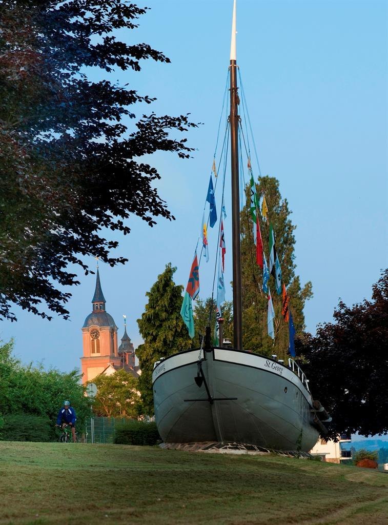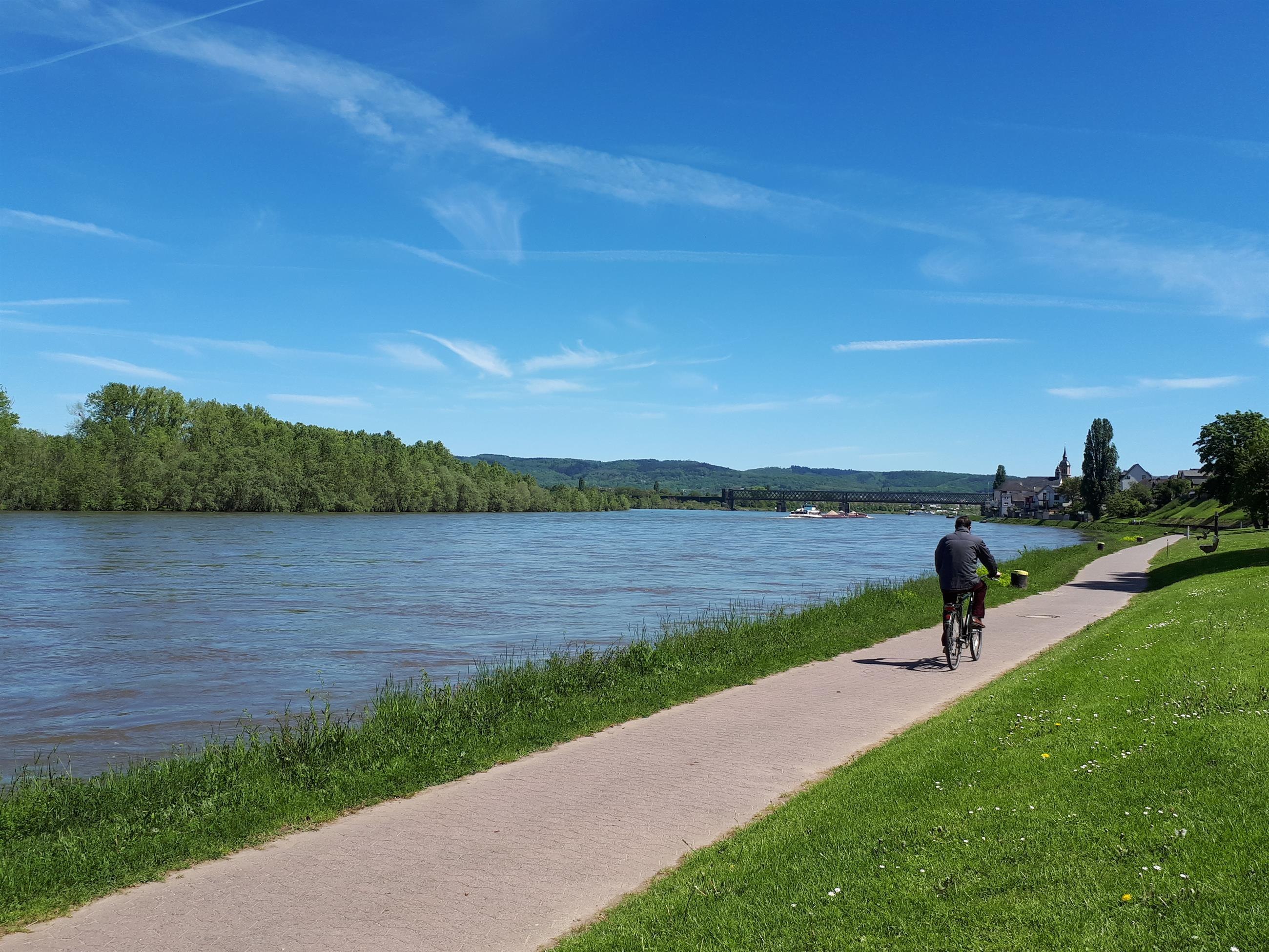Das alte Schiff, das in der Urmitzer Uferpromenade entlang des überregionalen Rhein - Radwanderweges "vor Anker" liegt, erzählt von der Zeit, in der Urmitz noch ein Fischerdorf war.