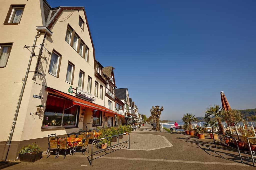 Das Restaurant liegt direkt an der Rheinpromenade. Im Sommer kann man auf der schönen Terrasse der Rheinpromenade sitzen.