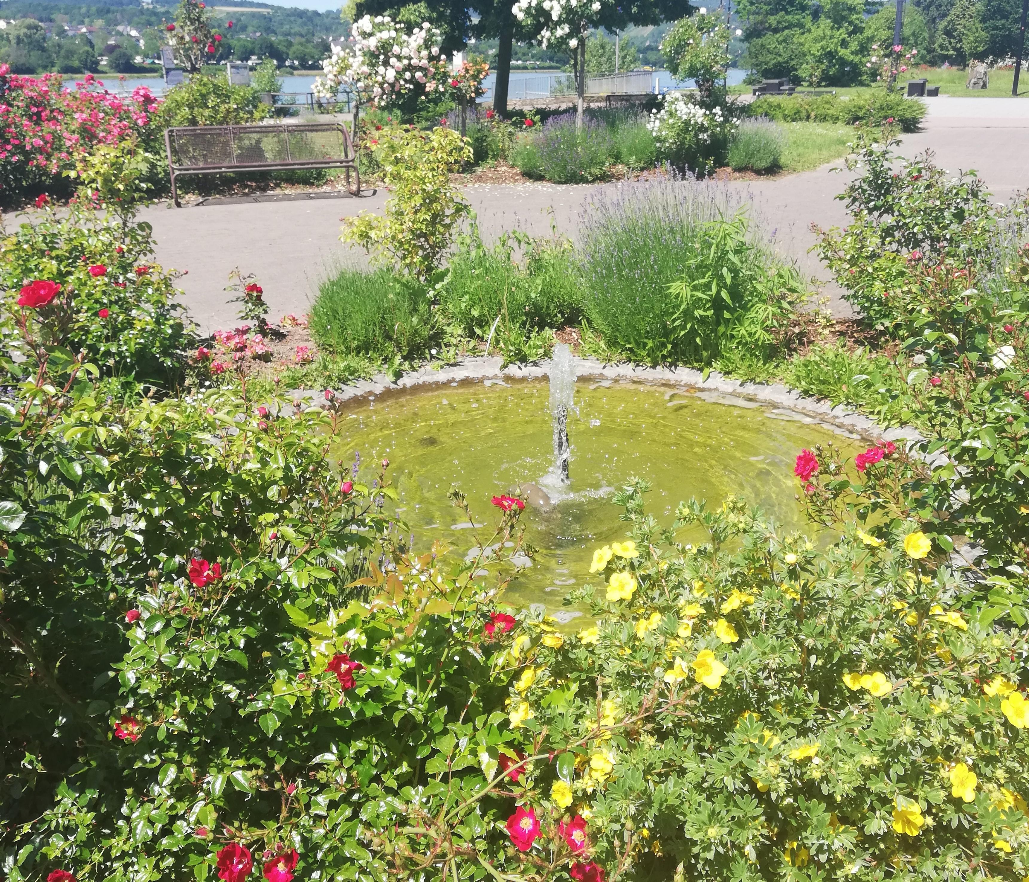 Der Rosengarten mit den neu gestalteten Bodo-Ebhardt-Anlagen ist ein weitläufiger Park am Braubacher Rheinufer und zeichnet sich durch eine Vielzahl von Rosenbeeten aus.