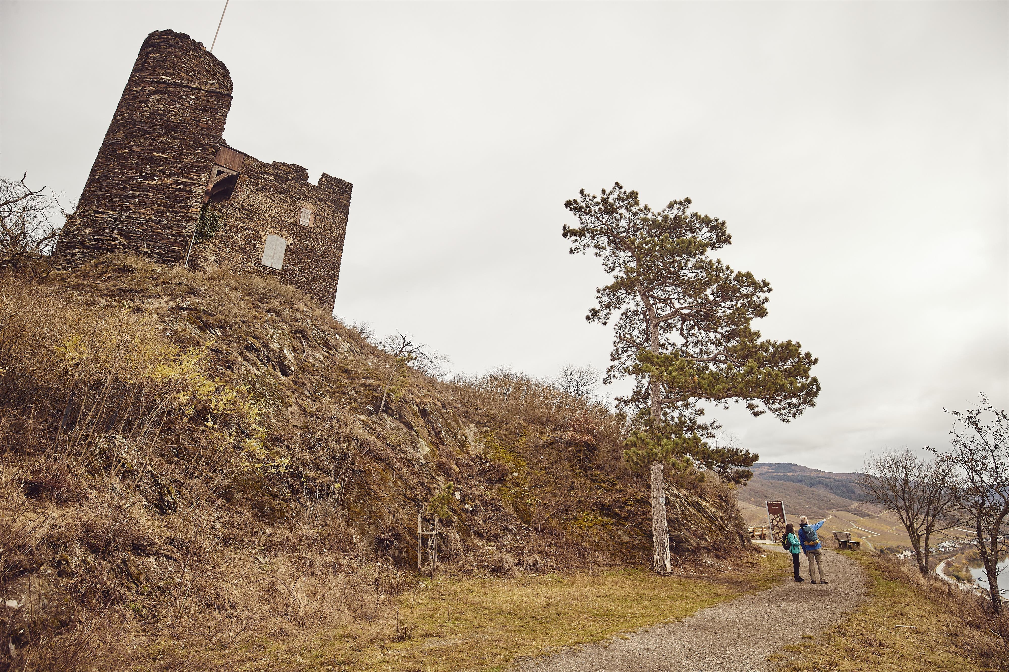 Wanderer an der Ruine Nollig | © Marco Rothbrust