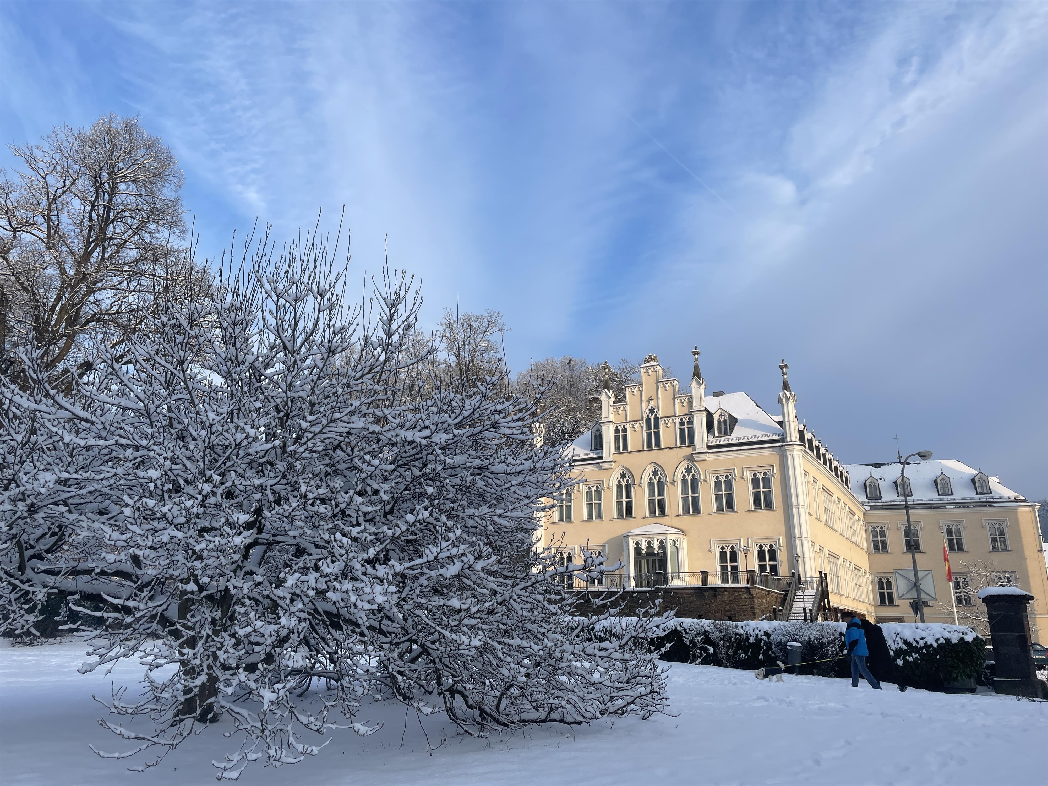 Als Fürst Ludwig Mitte des 19. Jahrhunderts das Schloss im neugotischen Stil umbauen ließ, wurde gleichzeitig nach einem Entwurf des früheren Direktors des Botanischen Gartens in St. Petersburg Karl-Friedrich Thelemann durch den bekannten Gartenkünstler Heinrich Siesmayer auf einer dem Schloss vorgelagerten, 7 ha. großen landwirtschaftlichen Fläche ein Park als Englischer Landschaftsgarten angelegt, der zusammen mit Schloss und dem 2 ha umfassenden Burgberg ein besonderes, romantisches Gesamtensemble darstellen sollte.