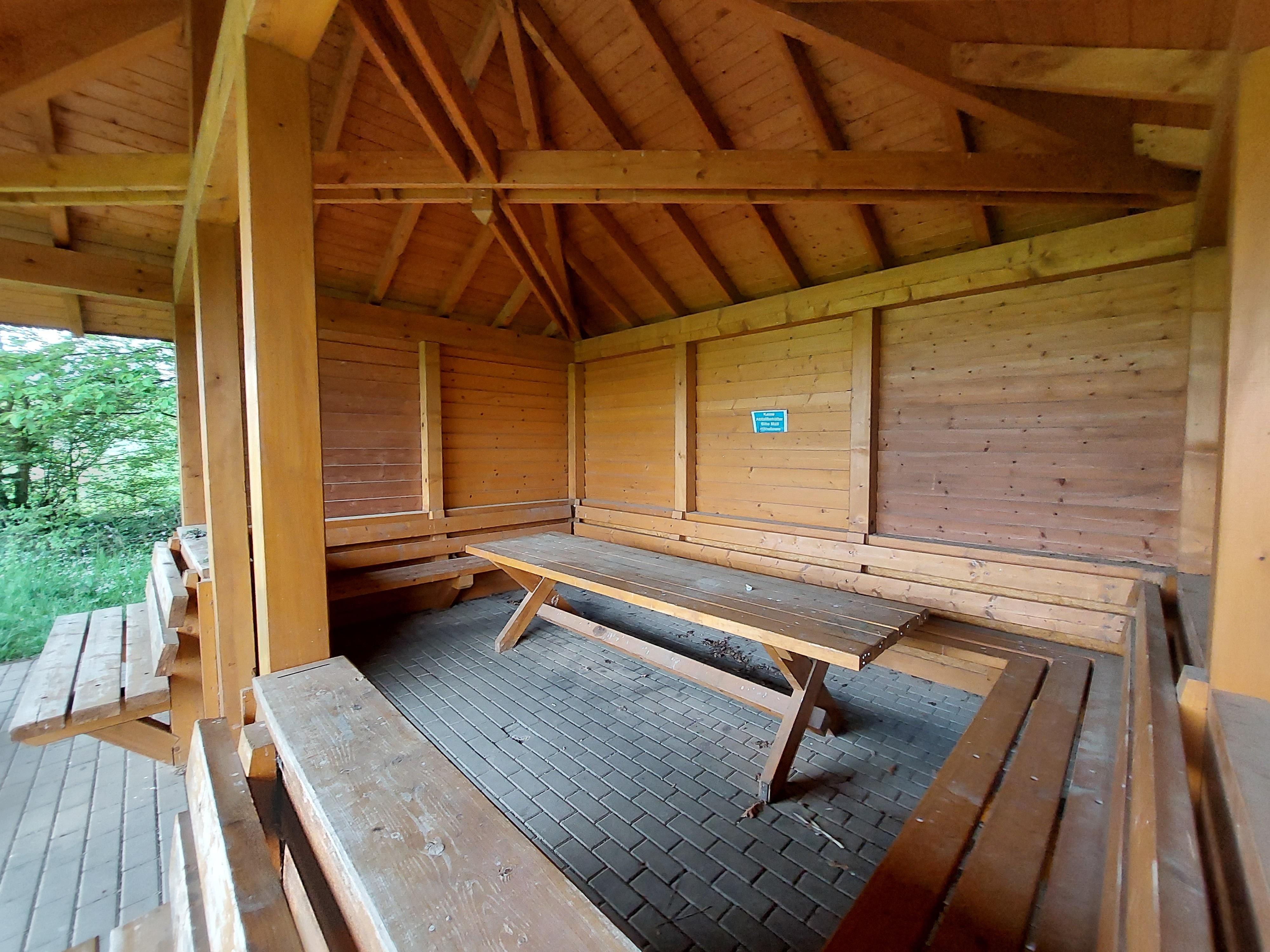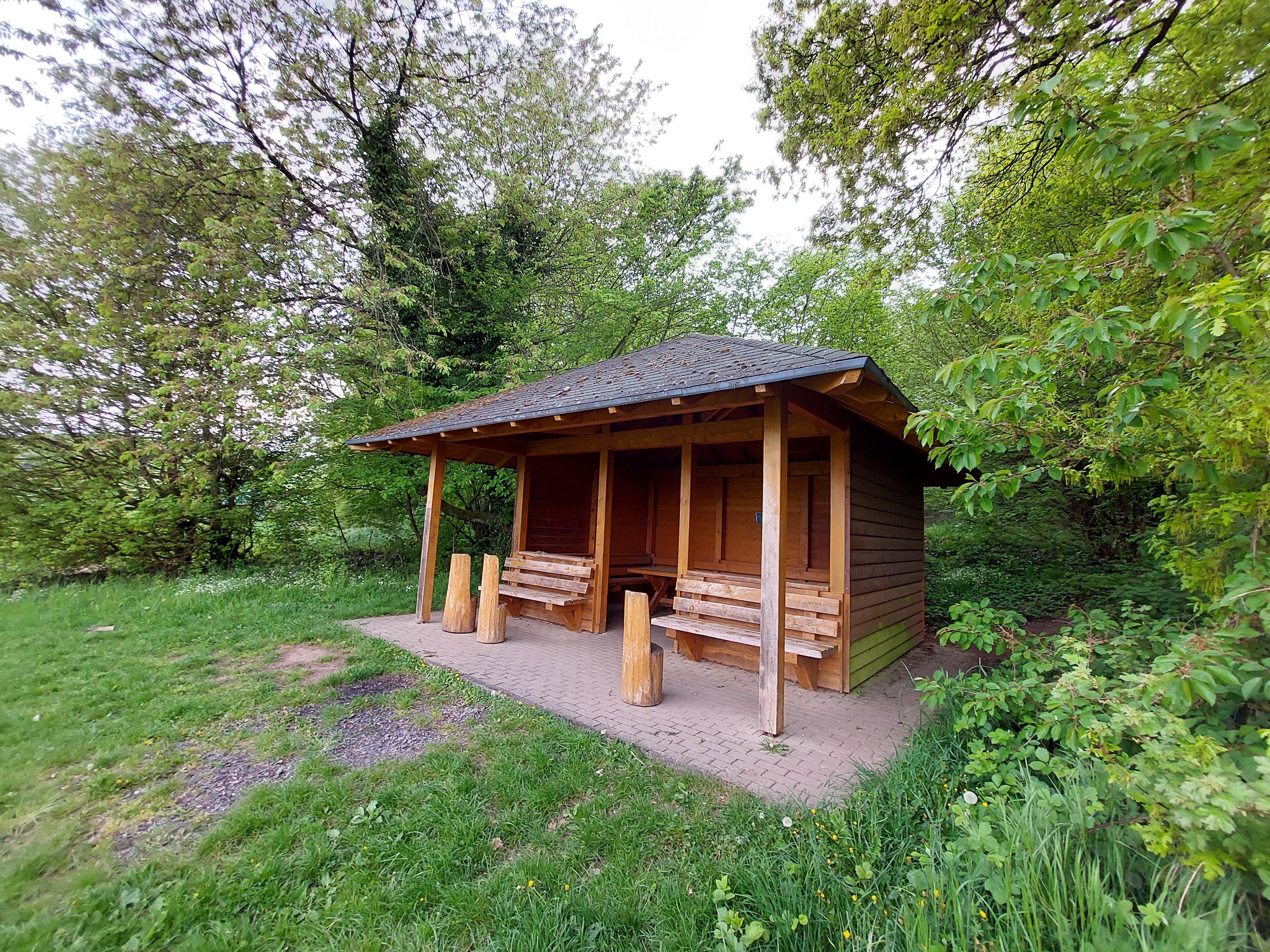 Diese Wanderschutzhütte befindet sich zwischen dem Jugendzeltplatz "am Pfaffenwäldchen" und der Siedlung Rhens- Hünenfeld.