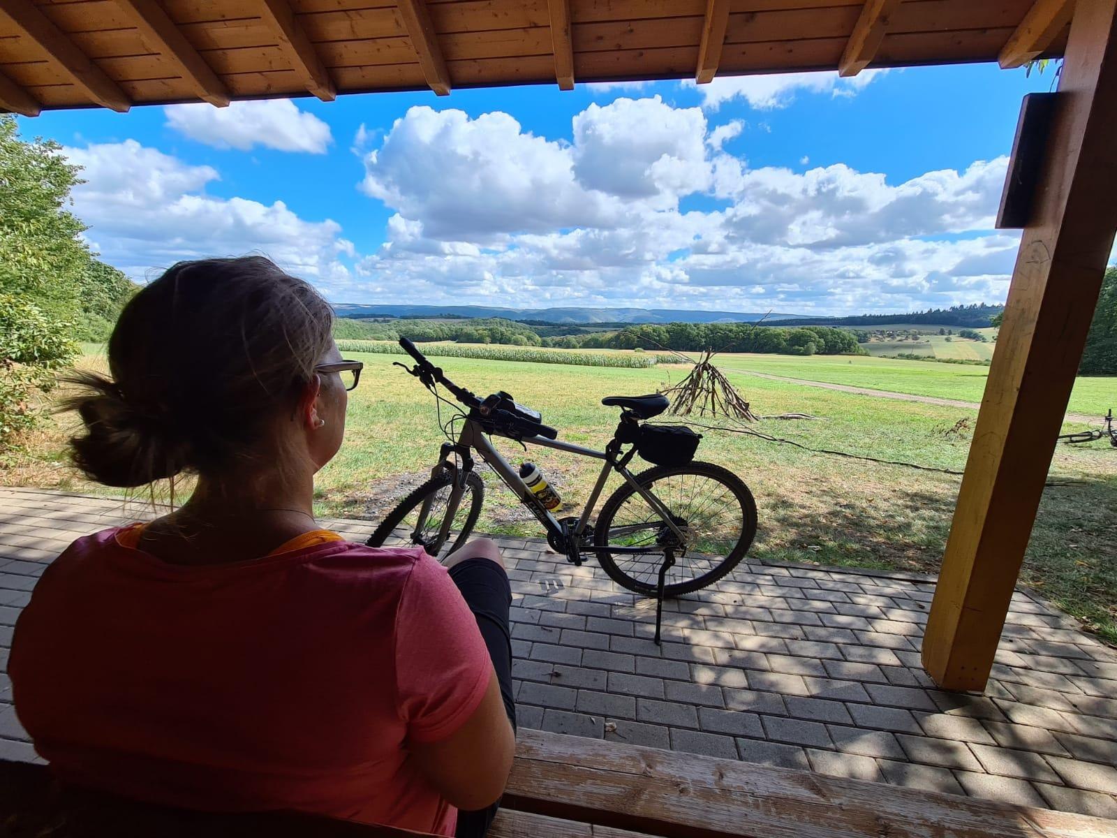 Diese Wanderschutzhütte mit wundervollem Weitblick auf die umliegenden Felder.