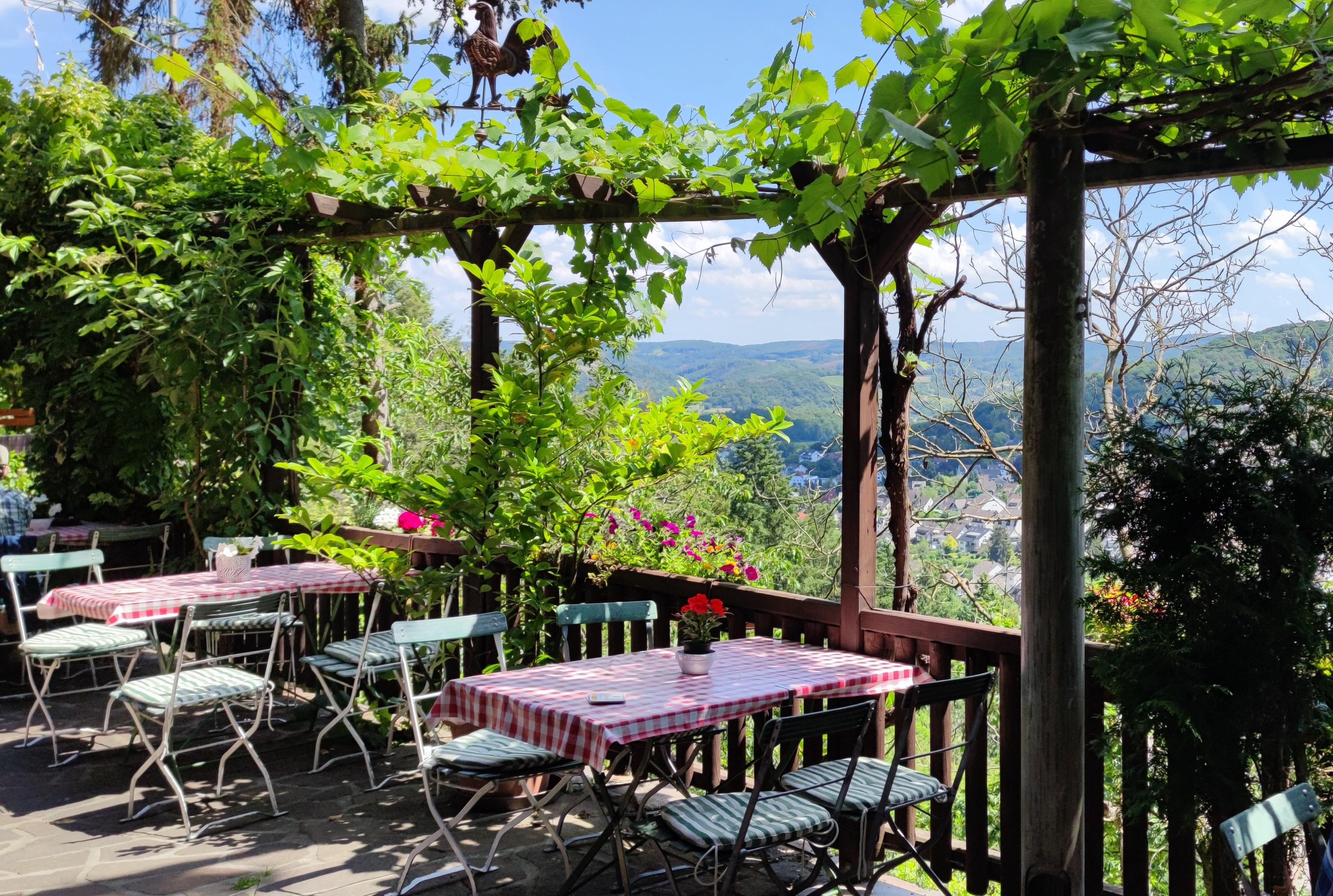 Umgeben von Wald, mit herrlichem Blick auf Oberbreisig, finden Sie meine "Schäferhütte". Hier können Sie bei einer guten Brotzeit, feinen Getränken oder einer Tasse Kaffee mit hausgemachtem Kuchen entspannen. Die schöne Terrasse ist mit Wein bewachsen, was besonders in den Sommermonaten sehr angenehm ist.