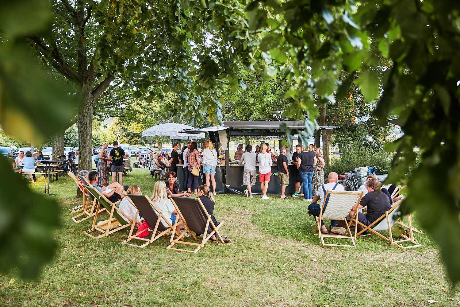 Wer möchte, bringt sich sein Picknick mit oder bestellt etwas bei dem ortsansässigen "Pizza-Express" (Lieferdienst) oder der "Rheinliebe" (Selbstabholer).