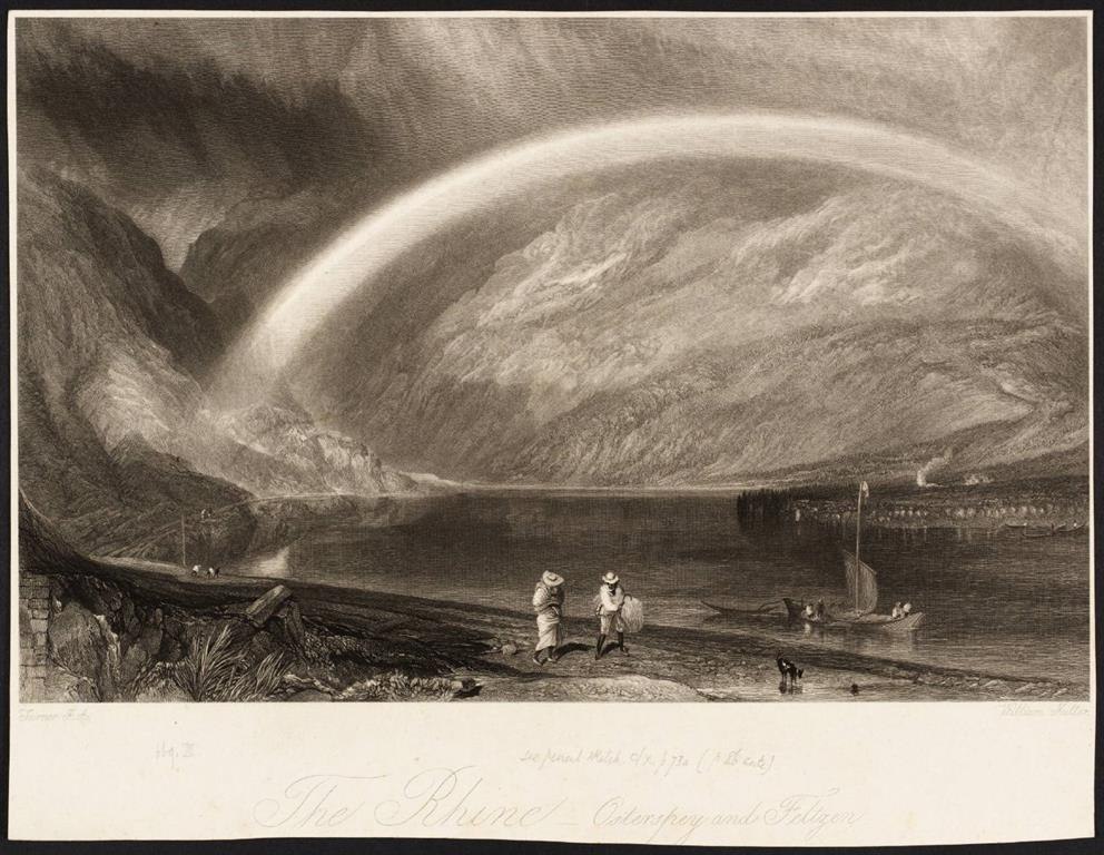Bei Braubach ist Turner am 23. August 1817 wieder auf die linke Rheinseite übergesetzt. Kurz vor der Stadt Boppard blickt Turner zurück auf die weitläufige Rheinschleife. Das Lichtspiel mit dem Regenbogen macht dieses Aquarell zu einer der reizvollsten Darstellungen aus dem Reigen der Mittelrheinmotive. Ursprünglich war dieses Aquarell (zusammen mit 35 weiteren Ansichten) für den Verleger B. Cooke bestimmt. Dieser entschied sich später gegen das Projekt, was Turner nicht daran hinderte, die Skizzen trotzdem umzusetzen.