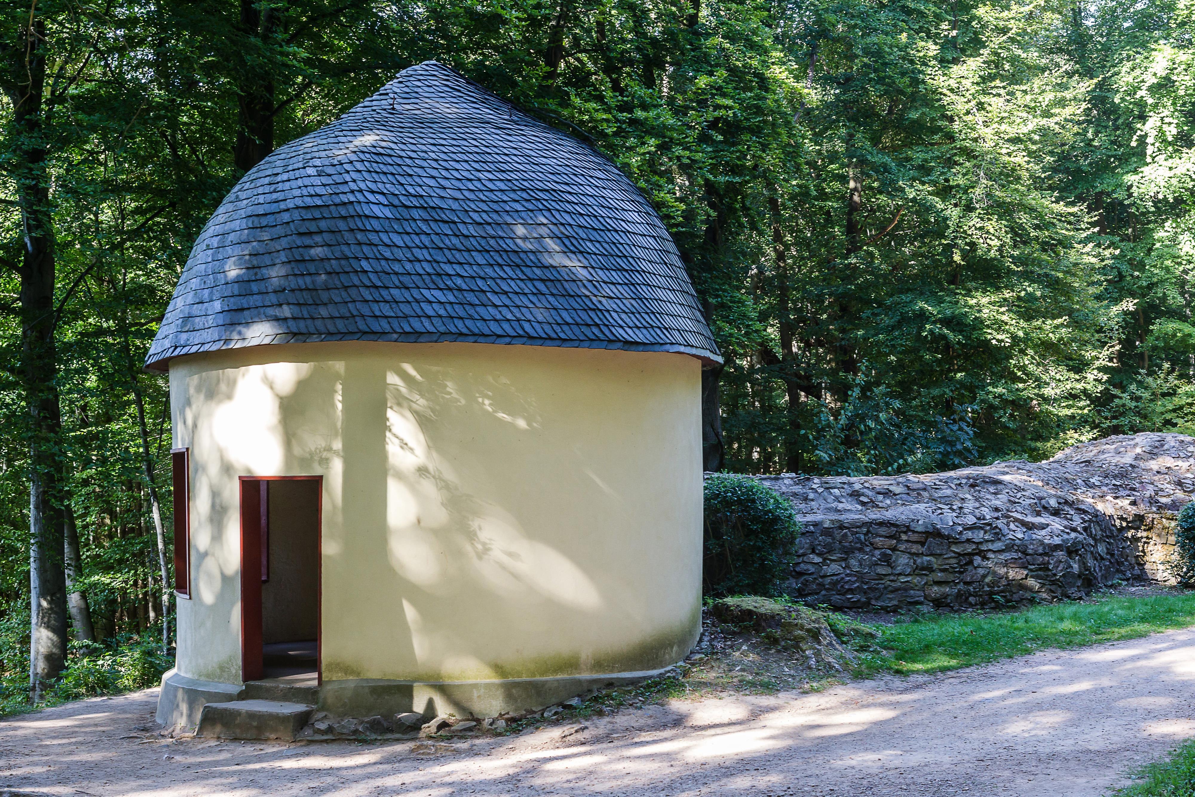 Die Zauberhöhle wurde um 1790 erbaut und ist ein ummauerter Gang von etwa 60 m Länge, dessen Wände ursprünglich mit glitzernden Glassteinen verziert waren.