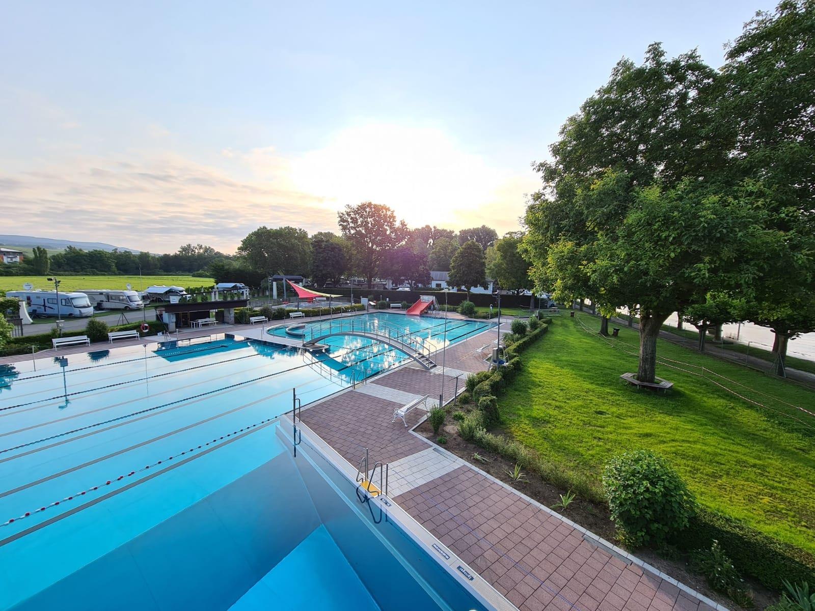 Outdoor swimming pool in Rüdesheim am Rhein.