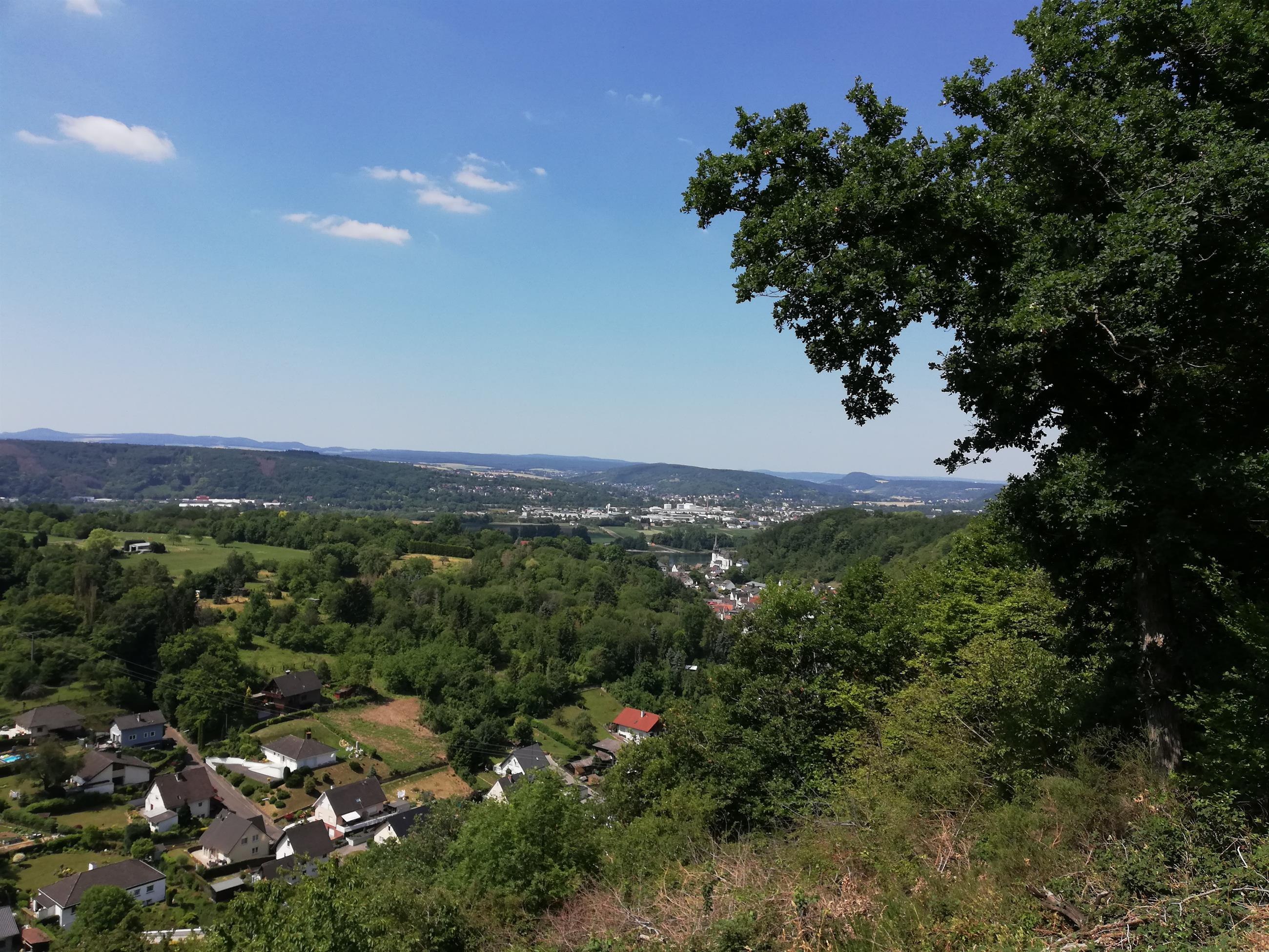 The "Koppe" forms Leubsdorf's highest basalt dome. It grants visitors a breathtaking view over the town of Leubsdorf and the Rhine Valley to the Ahr Valley and the Vulkaneifel. The neo-Gothic St. Walburgis Church, the "White Church on the Rhine", is shining and clearly visible in the center of Leubsdorf. The heavy oak summit cross marks the highest point of the basalt dome. In the vernacular it is affectionately called "Koppe Kreuz".