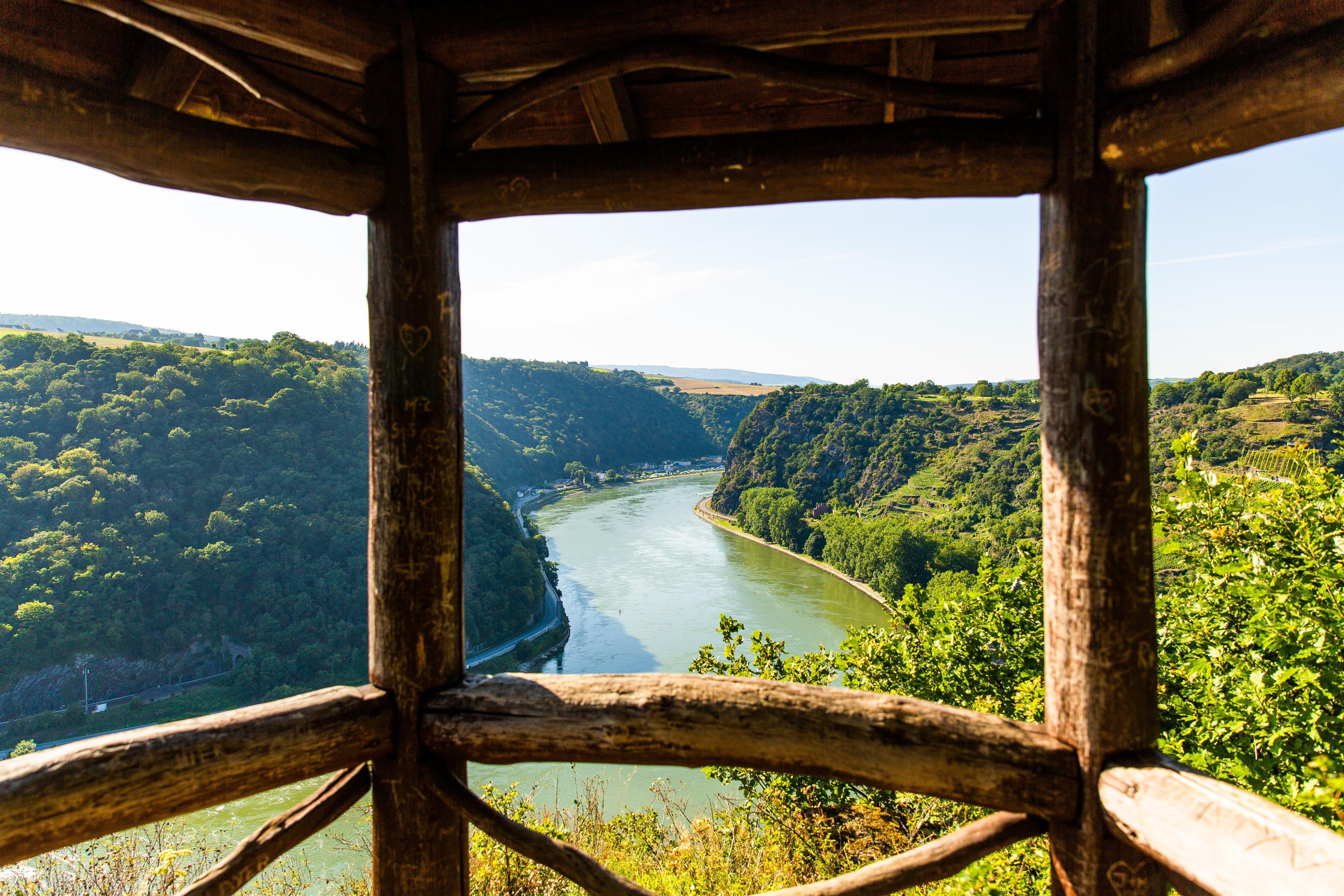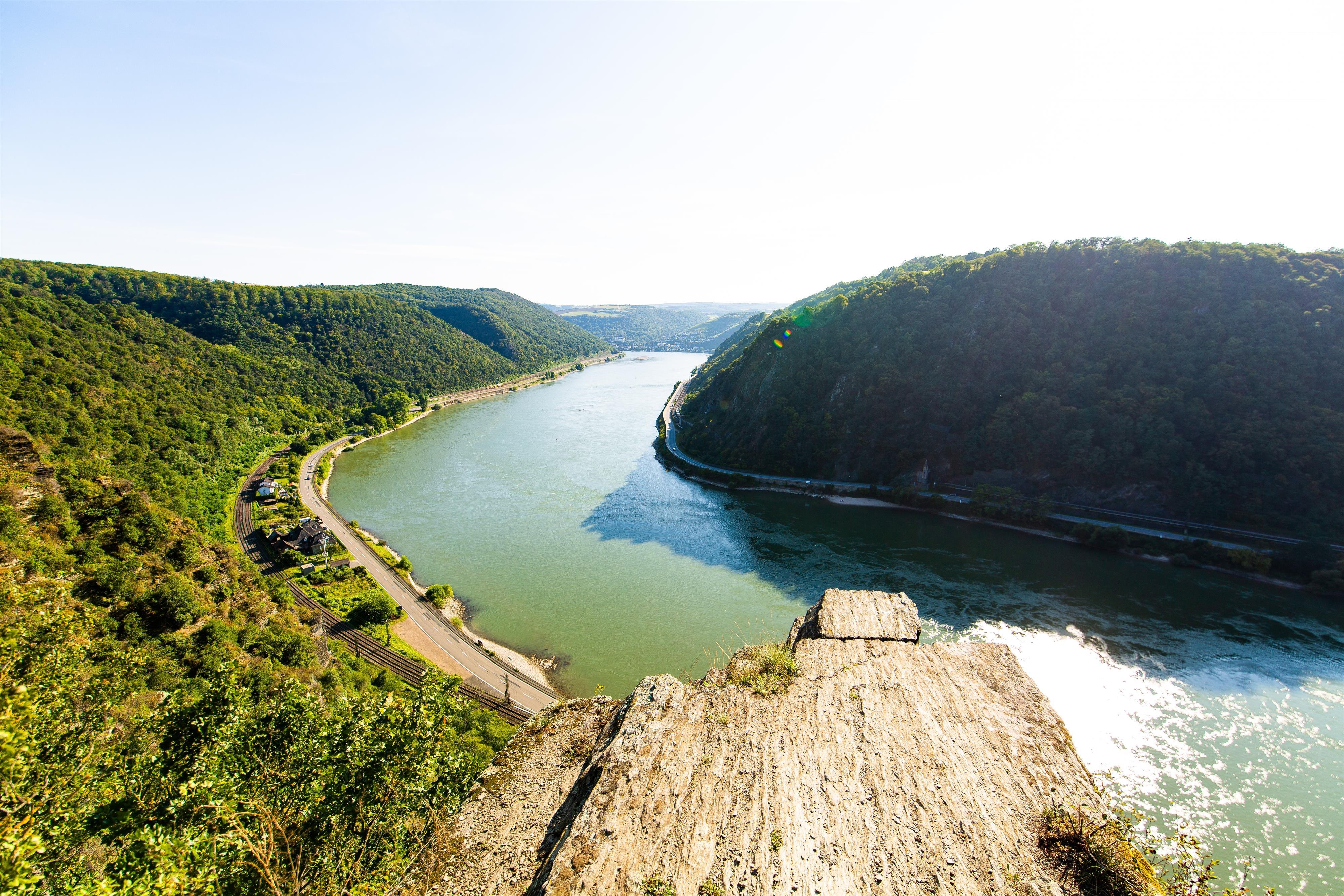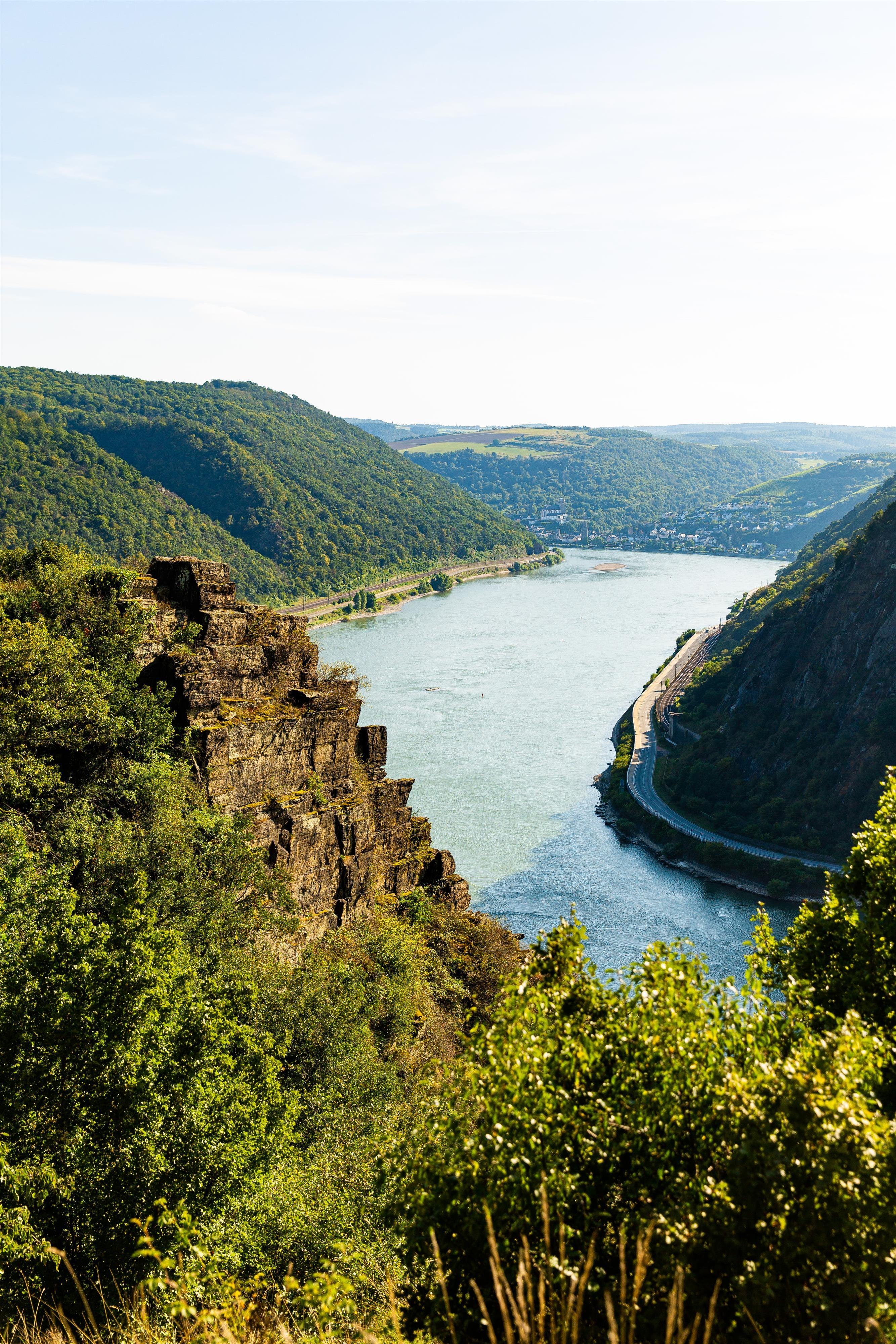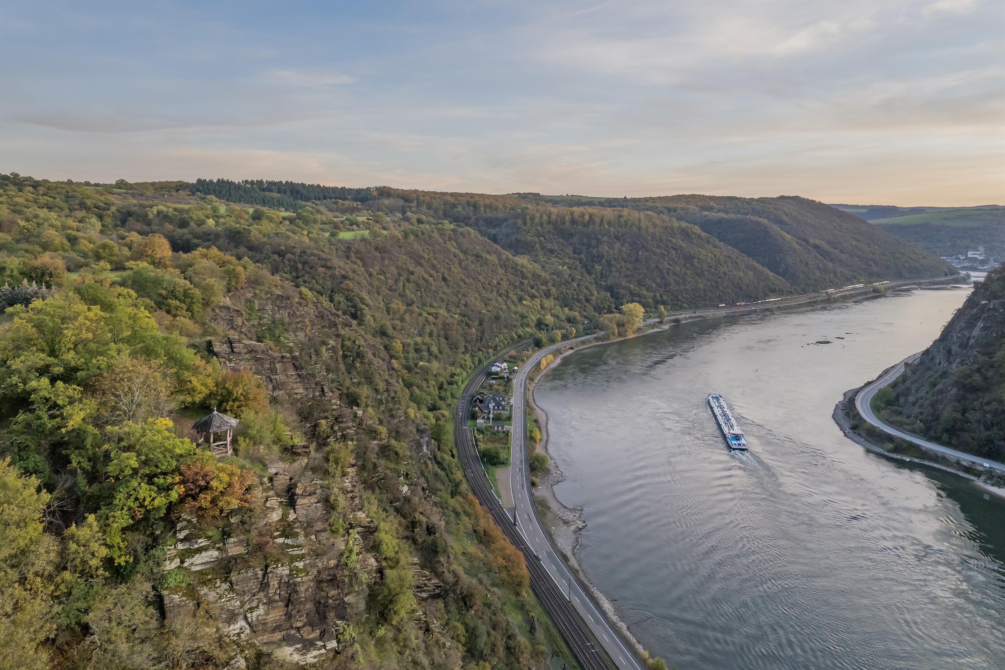 From the Loreley rock, you can experience views of the canyon-like breakthrough valley of the Rhenish Slate Mountains at various points. Once you have enjoyed the view long enough, you walk over to the starting point of the Loreley wine trail and reach the plateau at Leiselfeld. What follows is difficult to describe, you have to experience it: The Spitznack is a spectacular vantage point.