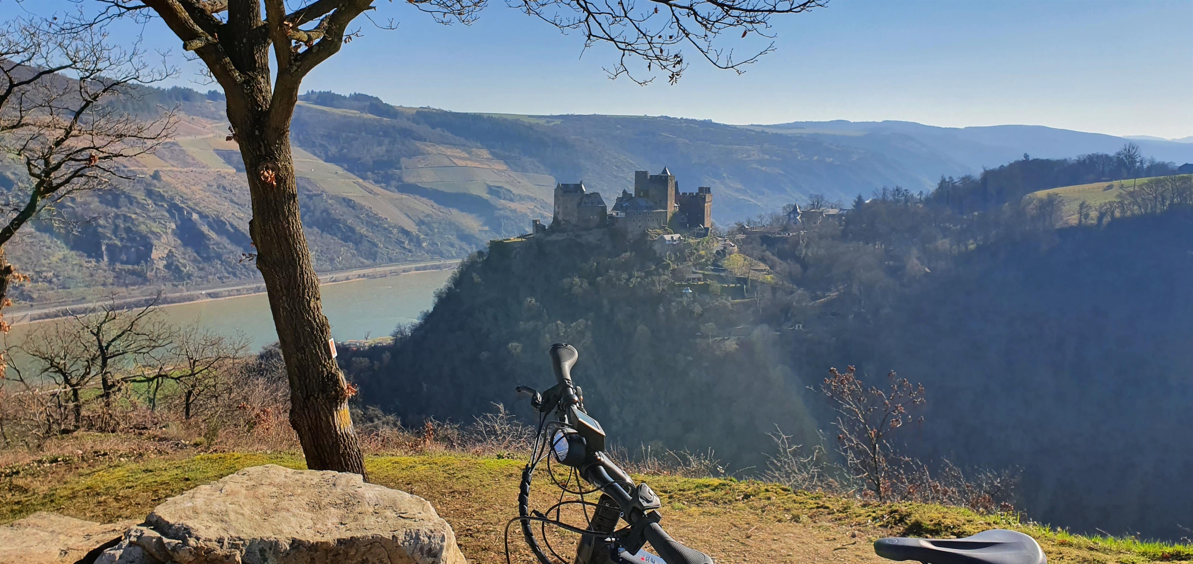 Fantastic view to the Schönburg from the Hardthöhe and into the Middle Rhine Valley.