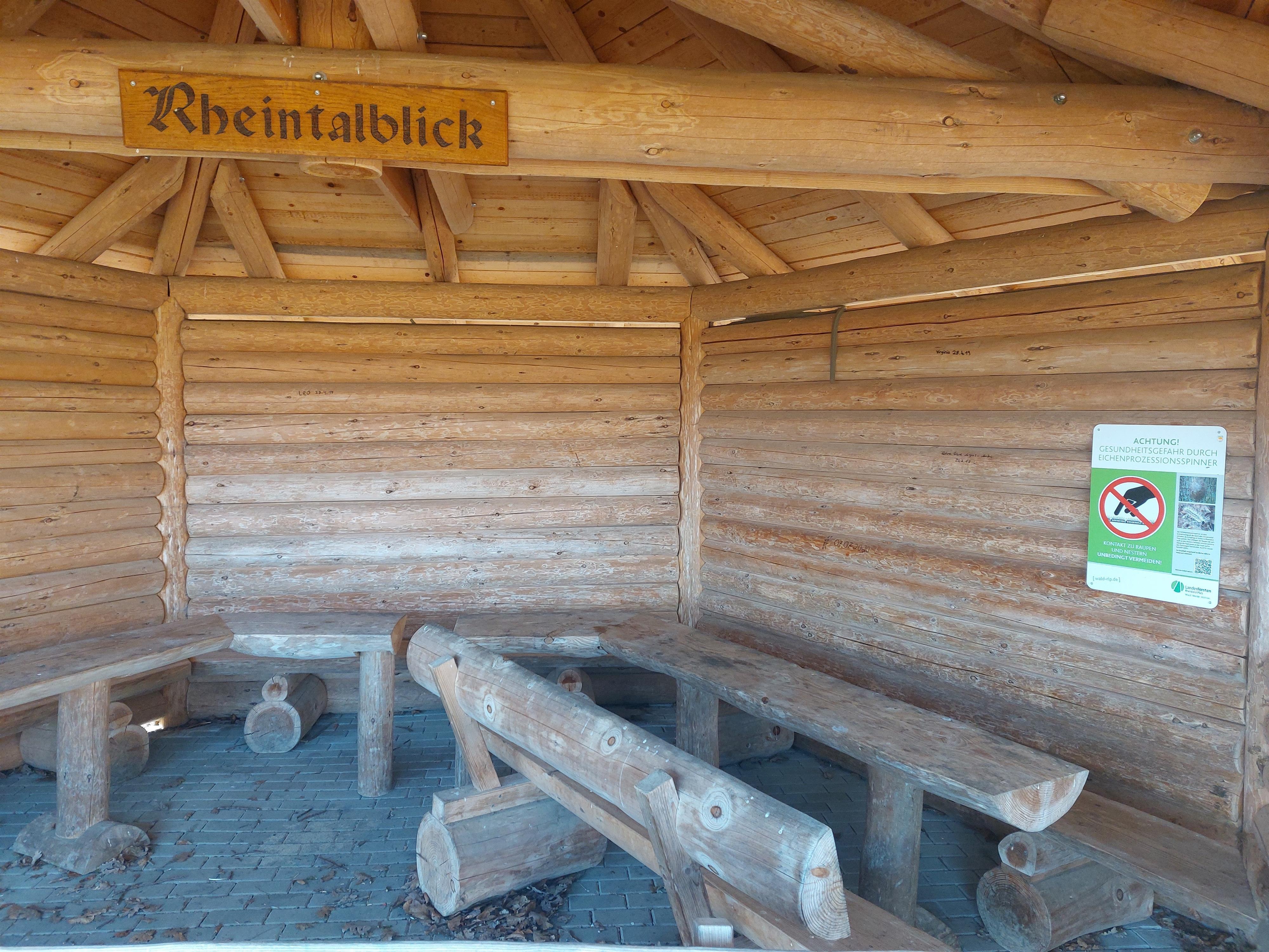Hiking shelter with a wonderful panoramic view of the surrounding fields, the Rhine Valley, and the Marksburg.