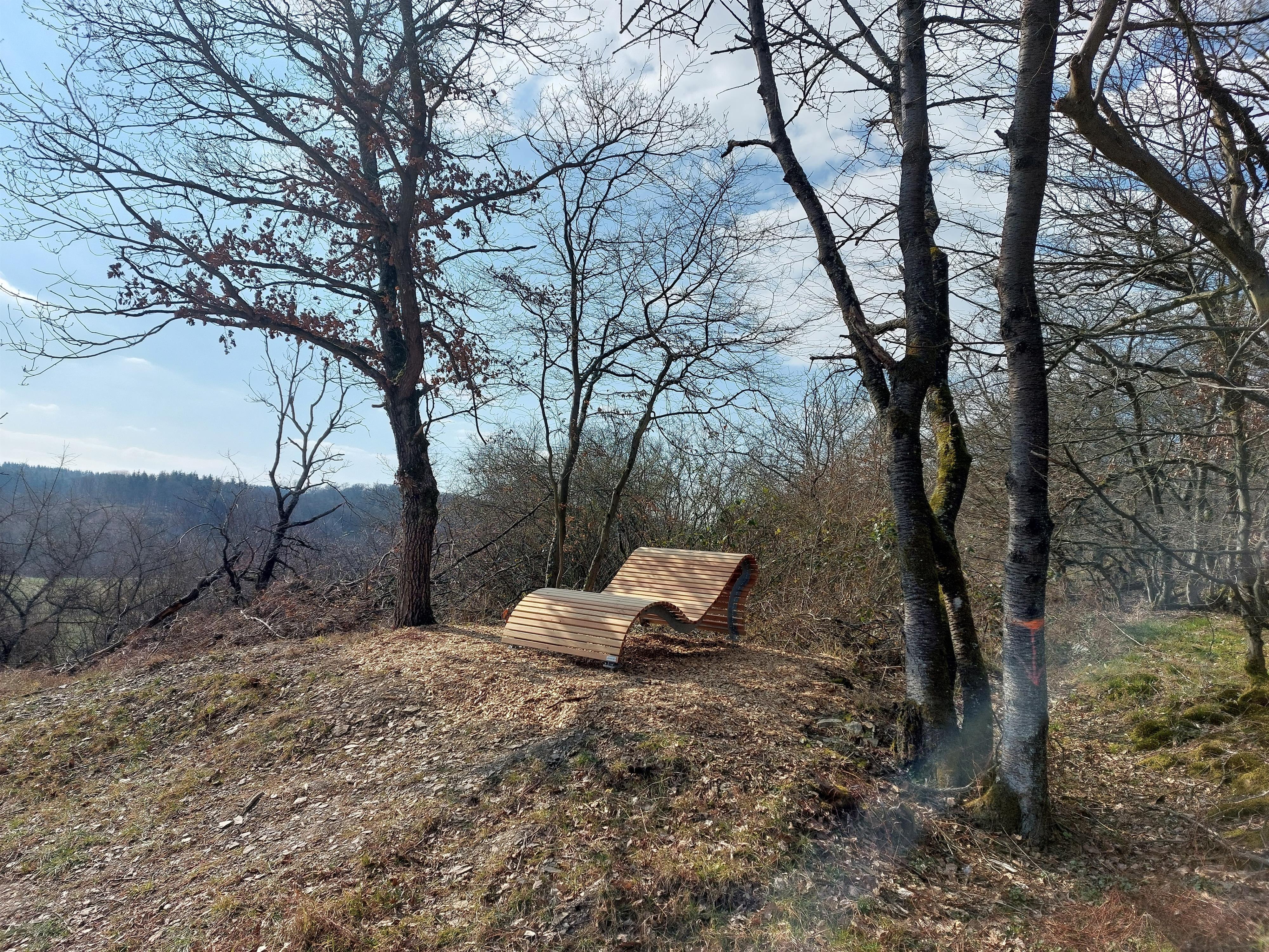 Packing binoculars, wearing sturdy footwear, picnic in the backpack, and off we go: In 2022, the wine brotherhood set up a great vineyard swing, a table-bench combination, and a reclining bench on site. The location is very natural, situated in the woods, and invites resting and lingering.