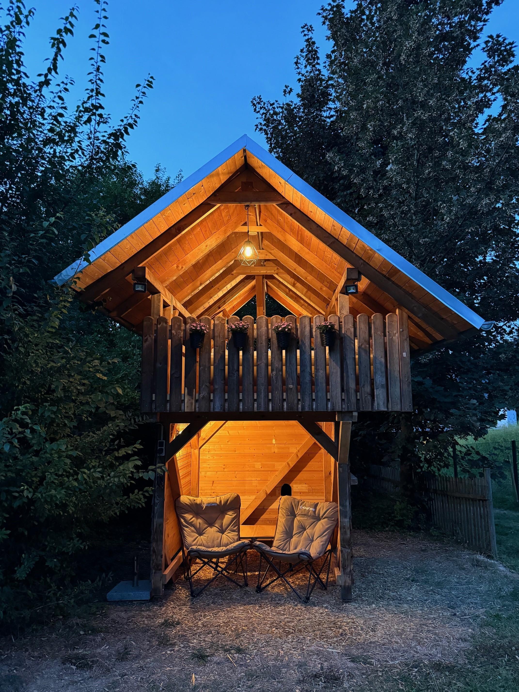 There are no disturbing light sources here, meaning you will experience your night under the starry sky unfiltered. There is electricity and Wi-Fi in the treehouse itself.