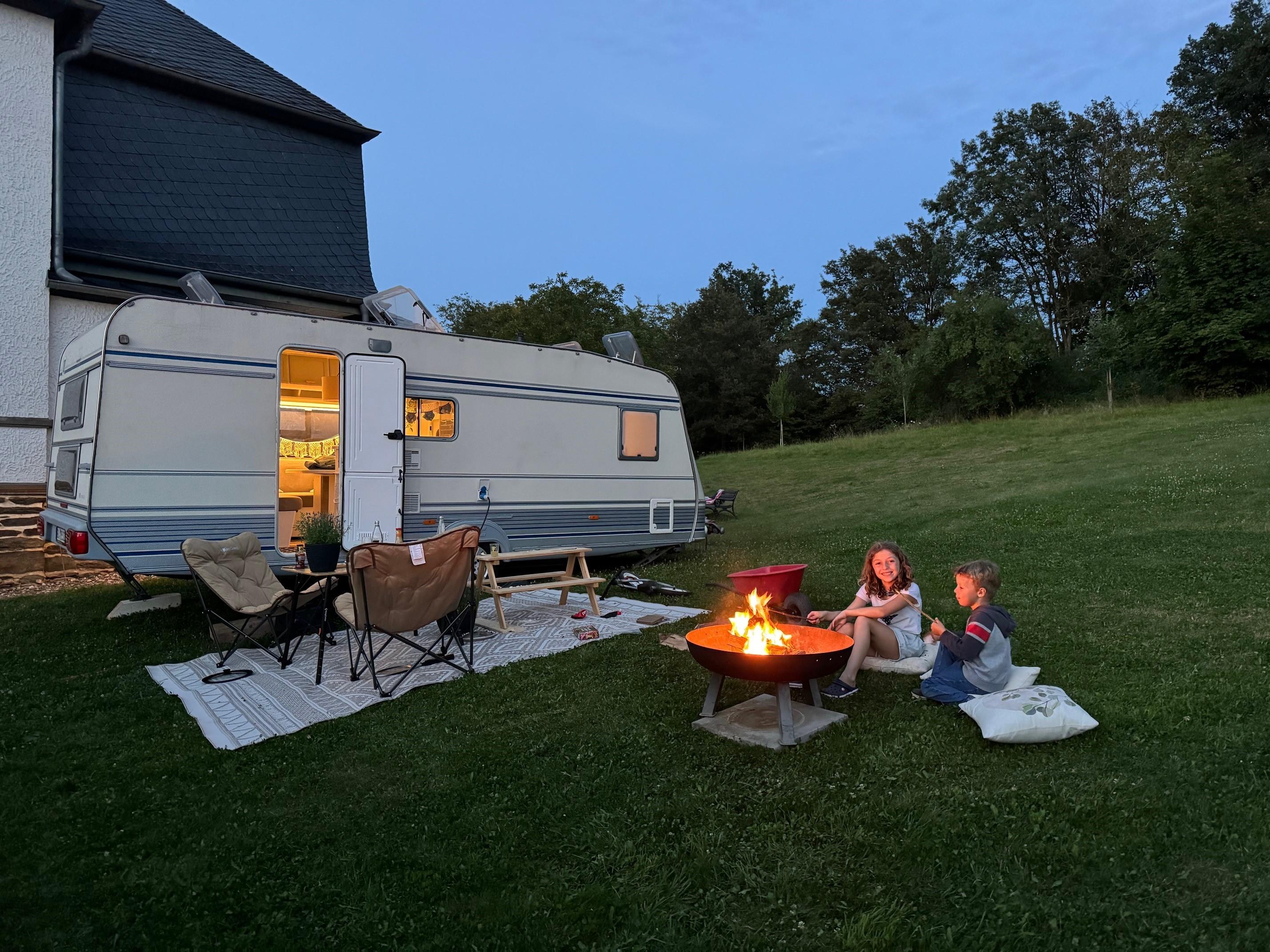 Our treehouse near the forest on park-like grounds offers everything your heart desires. We have set up a comfortable queen-size air mattress (203x152 cm) and provide you with fresh bed linens.