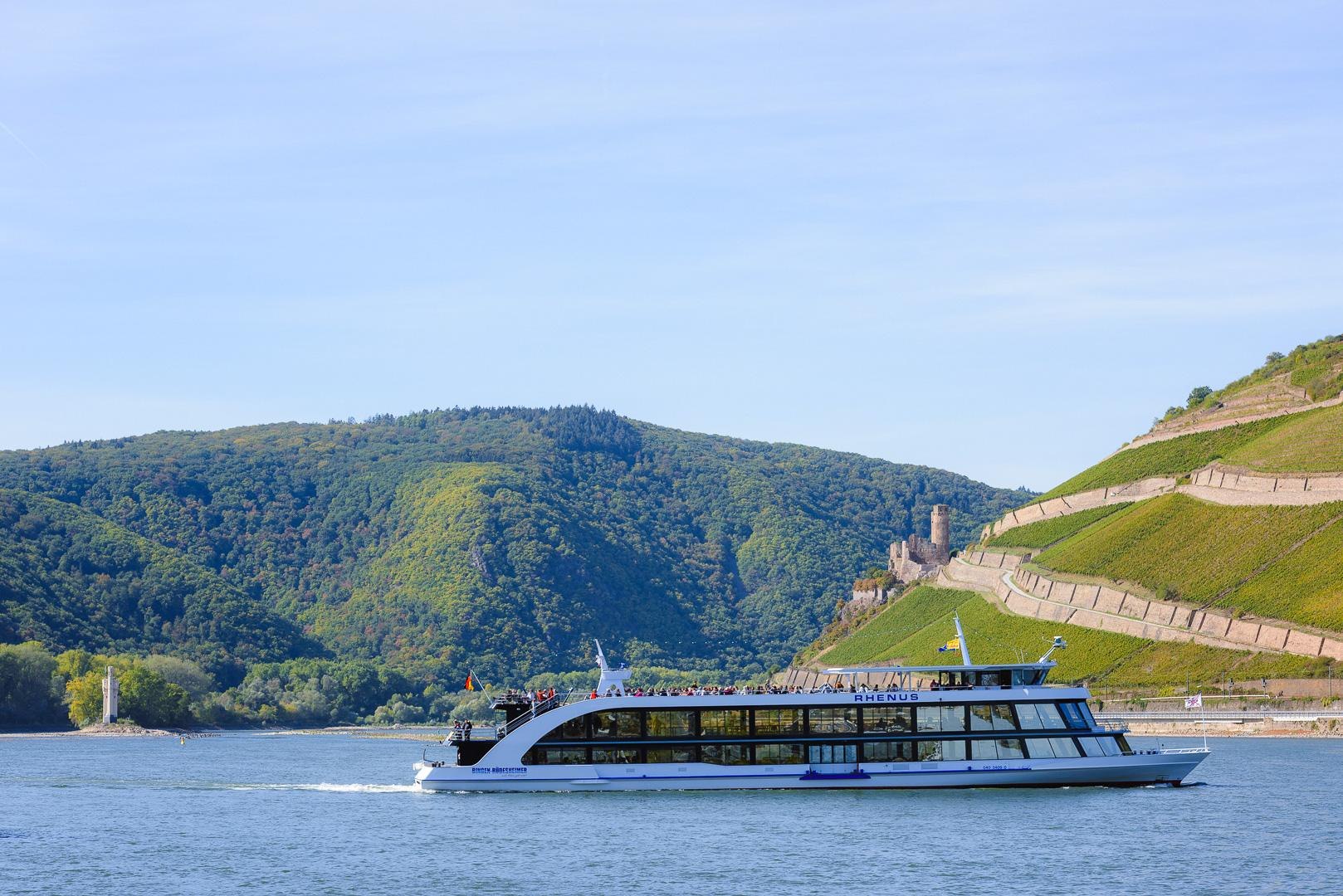 The Bingen-Rüdesheimer passenger shipping navigates the Upper Middle Rhine Valley (the Middle Rhine Valley was declared a UNESCO World Heritage Site in 2002!) with five scheduled service boats and stops at numerous locations between Bingen and St. Goar, Rüdesheim and St. Goarshausen. The offerings range from castle trips (1.5 hours) to Kölsch parties, After Work trips, romantic Loreley cruises (3-hour round trip) to murder mystery dinners. Charter trips available year-round