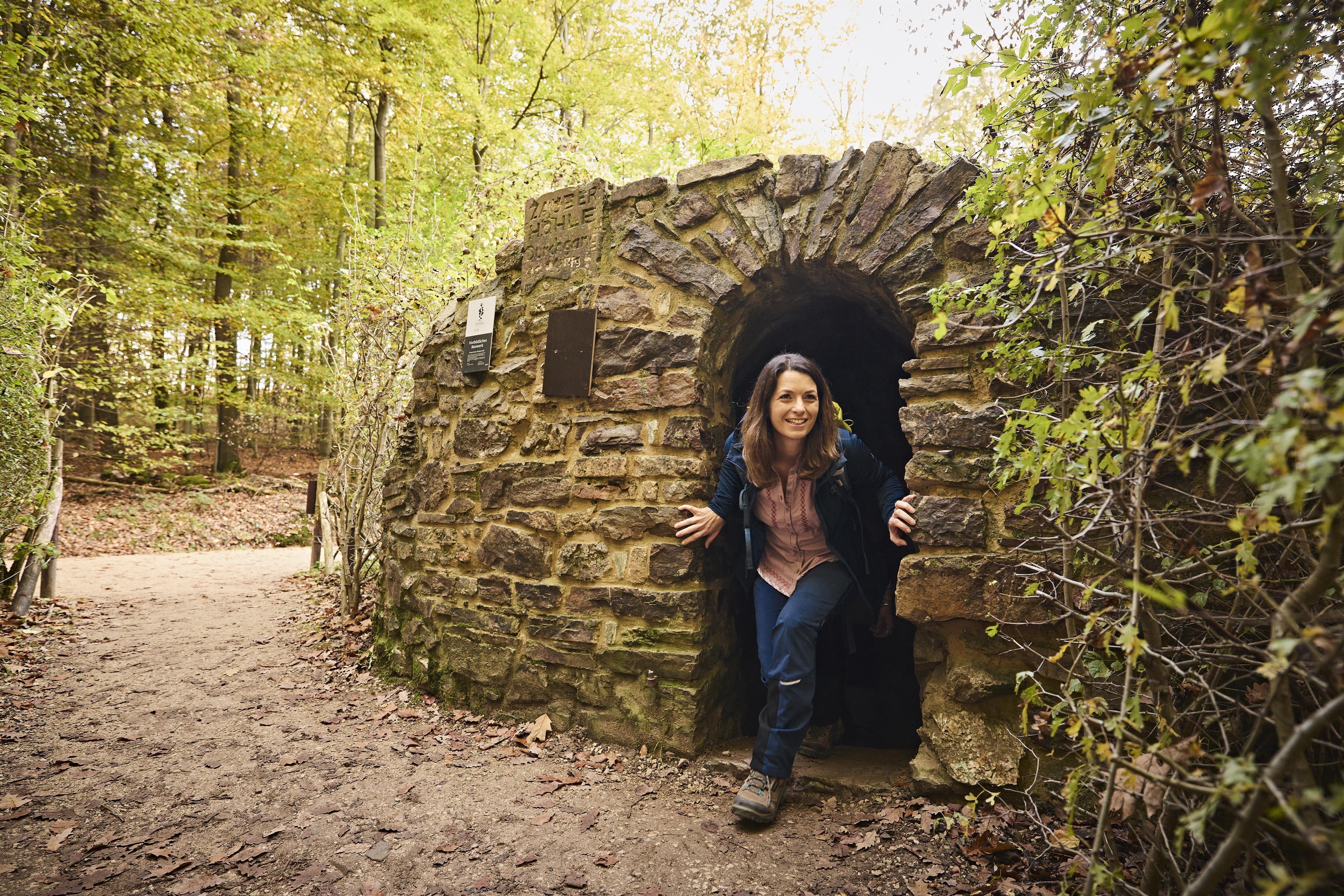 The magic cave was built around 1790 and is a walled corridor about 60 m long, whose walls were originally decorated with sparkling glass stones. The unlit corridor leads into a rotunda, the “magic hut”. When entering the magic hut after the maze-like experience of the dim corridor, the visitor was greeted with a view toward the Rhine – as if in a magical world of nature.